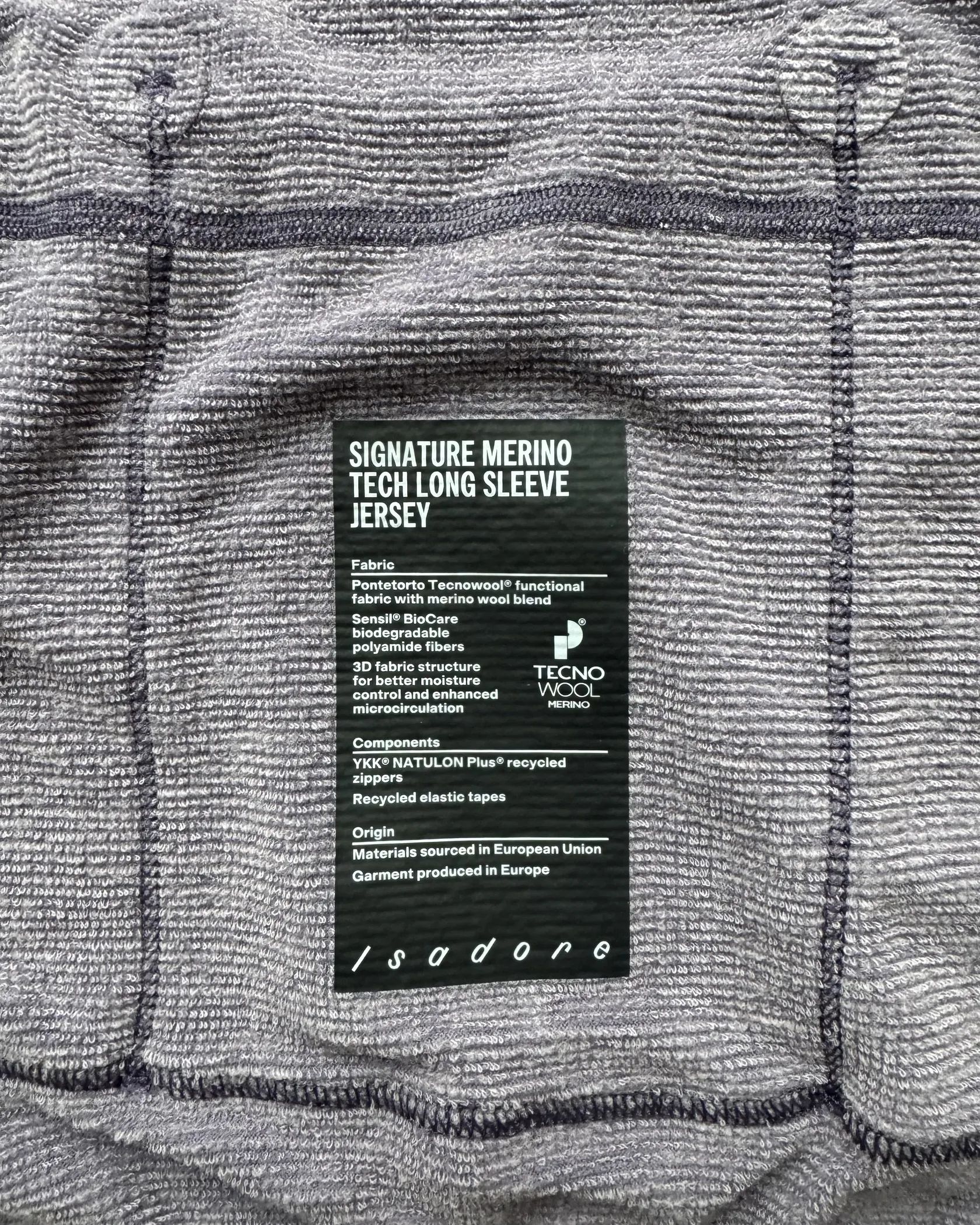 “Pontetorto® Tecnopile Bio® material with merino wool blend with a 3D internal structure allows for better air circulation between the fabric and the body. It ensures more efficient moisture removal and maintains effective thermal insulation. Merino wool is breathable, does not stick to the skin, feels pleasant to the touch and does not make you feel cold even after sweating. Use of Sensil® Biocare biodegradable polyamide fibers increases strength and abrasion resistance on the outside of the material. Silicone gripper around the bottom hem keeps the jersey in place and 3 spacious back pockets with an extra zippered pocket provide plenty of room for small valuables.”