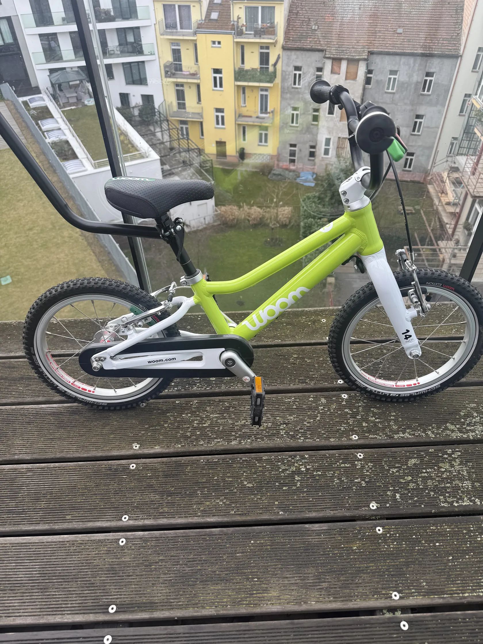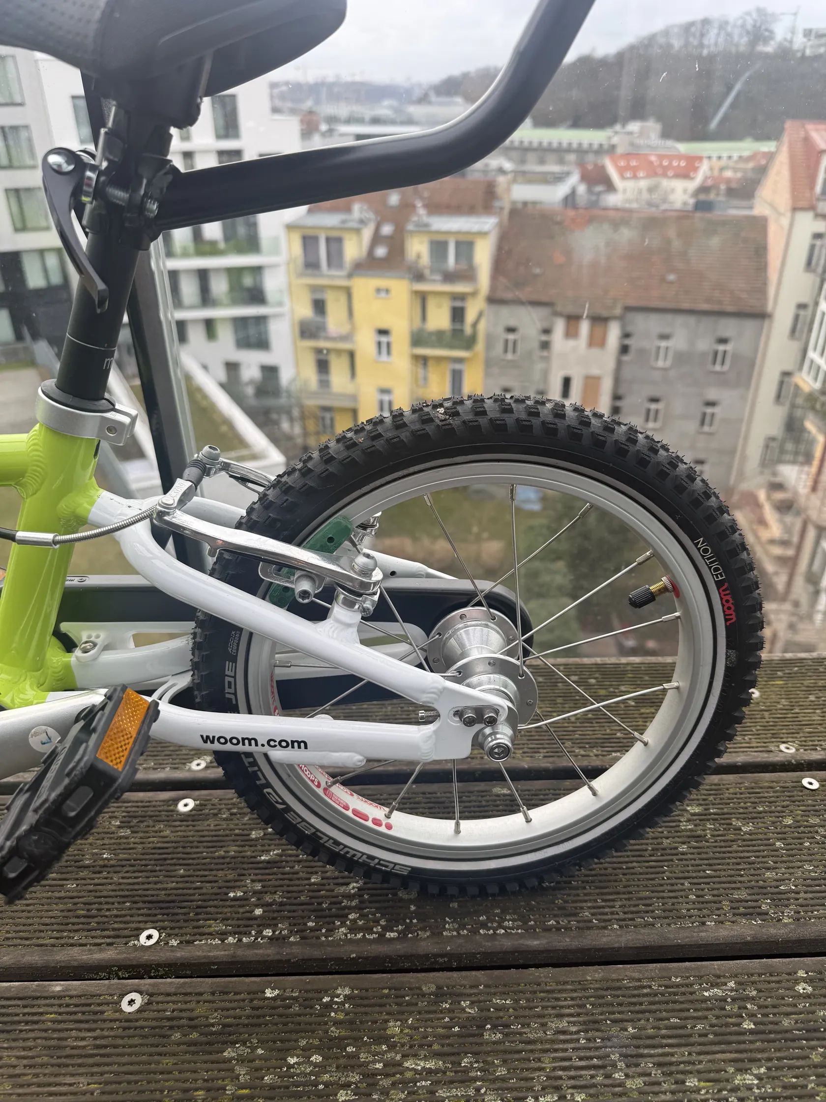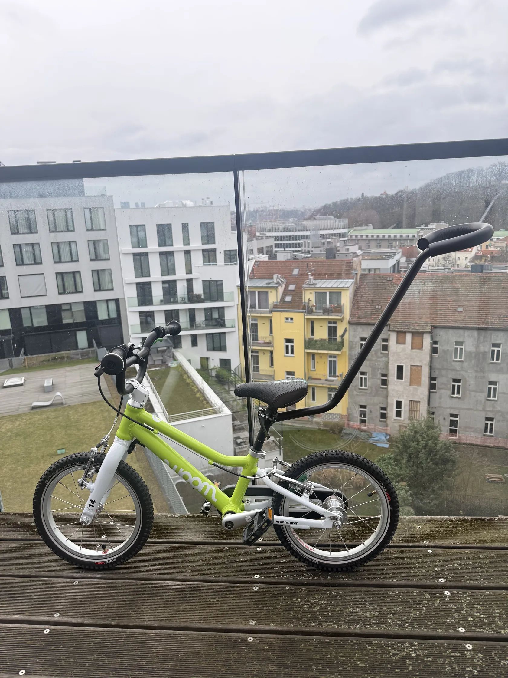 Woom 14 je lehoučké dětské kolo navržené speciálně pro děti kolem 3–4 let, aby snadno přešly z odrážedla na šlapací kolo