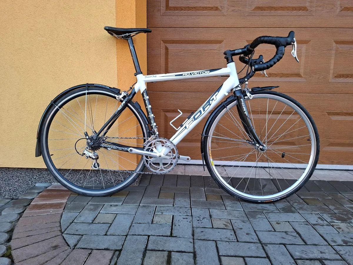 Prodám silniční kolo Fort RO. Victor velikost M (dle výrobce pro velikost postavy 175-185 cm), spíše pro 175-180 cm. Na kole jsou drobné provozní oděrky, hodí se i jako slušný zimák. Rám AL, karbonová vidlice a zadní stavba Kompletní sada Campagnolo Centaur 2x10 Kliky 175 mm, převodníky 53/39 Přední kolo Mavic CXP33 Zadní kolo před rokem nové s nábojem Novatec Pláště Continental Ultra sport Cena i o dohodě a rozumné nabídce.
