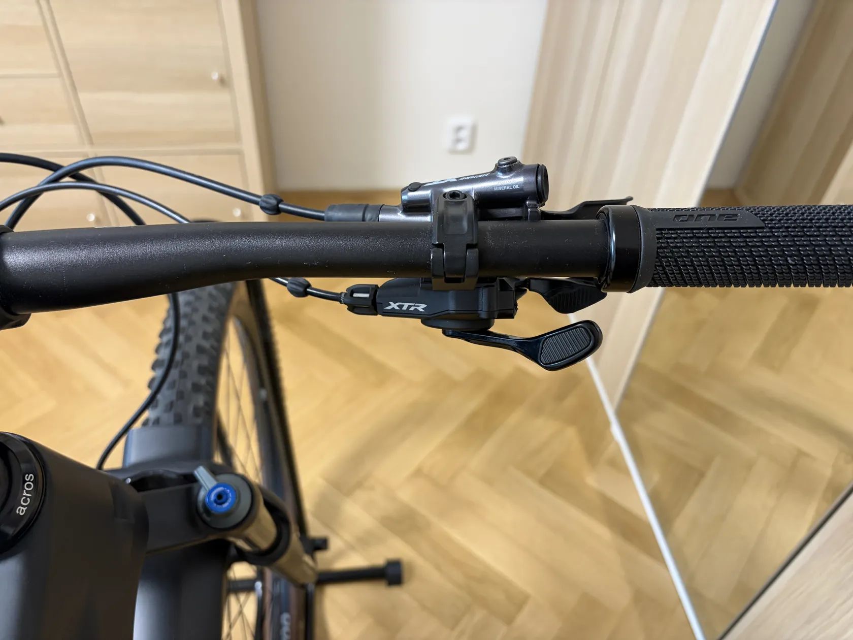 Nabízím 1 sezonu jeté horské kolo Superior XP 979, velikost L. Kolo je v super stavu, koupil jsem ho nové 7/24, takže je ještě v záruce. Oproti původní specifikaci je kolo vylepšeno o kompletní pohon XTR a úplně nová, neježděná kola DT Swiss XR1700. Rám: Carbon MTB Mid Modulus, Boost 12x148mm Vidlice: DT Swiss F232 ONE, Tapered, 15x110mm axle, 100mm travel Řazení: Shimano XTR SL-M9100 Zadní měnič: Shimano XTR RD-M9100 Kazeta: Shimano XTR CS-M9100, 10-51 Řetěz: Shimano SLX Kliky: Shimano XT FC-M8100, 34T Brzdy: Shimano XT M8100 Kola: DT Swiss XR1700 Pláště: Schwalbe Racing Ray/Ralph Sedlovka: ONE Race, Carbon, 27.2mm Sedlo: Fizik Terra Aidon X5 - 145 mm Řídítka One alloy 5mm rise, 760 mm Představec One 80 mm Váha: 10,9 kg