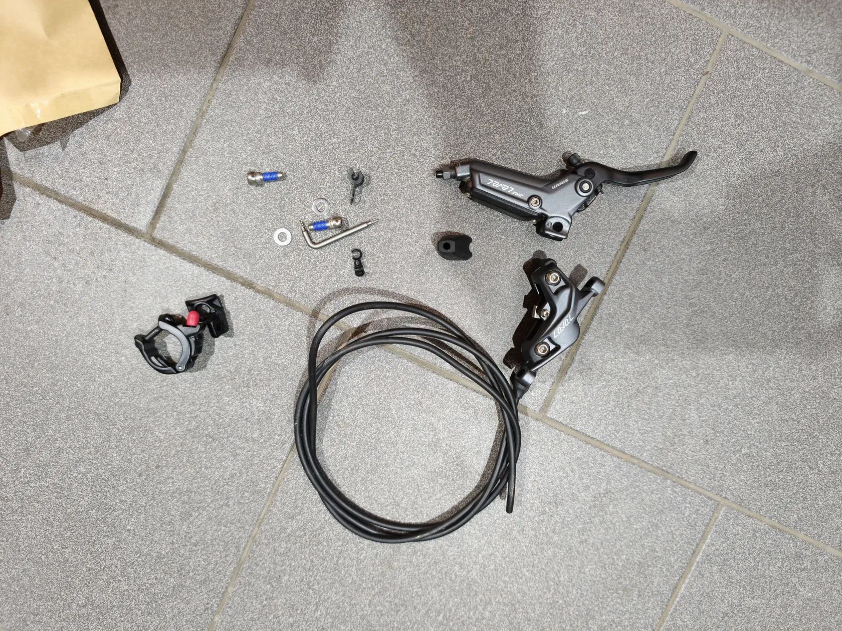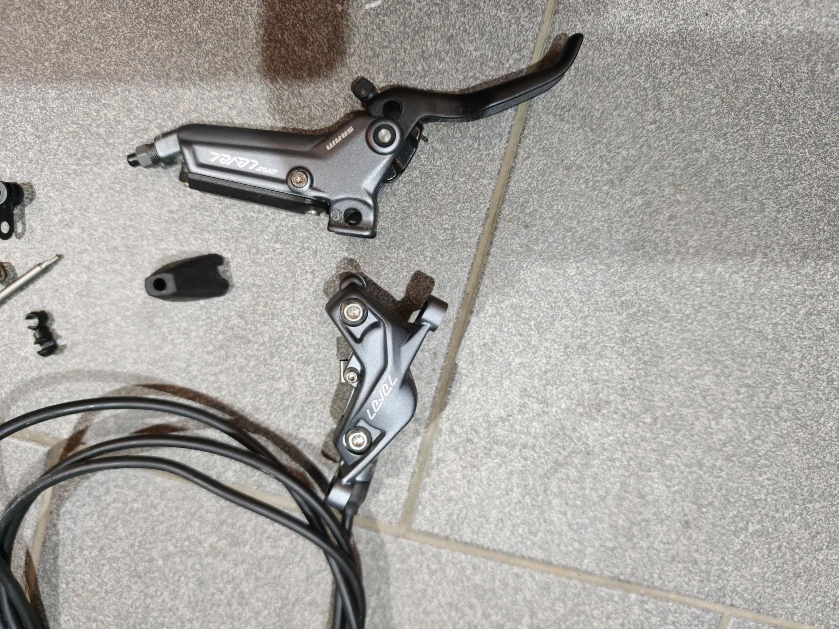 Prodám brzdy Sram Level Bronze, 4 píst vč. desek a vč. kotoučů Centerline 180+160mm. Zadní je rozpojená. Demontováno z nového kola, jeté 2h. Na vrchu přední páky pár drobných škrábanců viz. foto. Vč. objímek, vše co je na fotkách. Dobírka Zásilkovnou nebo osobně na trase Mladá Boleslav-Černý Most.