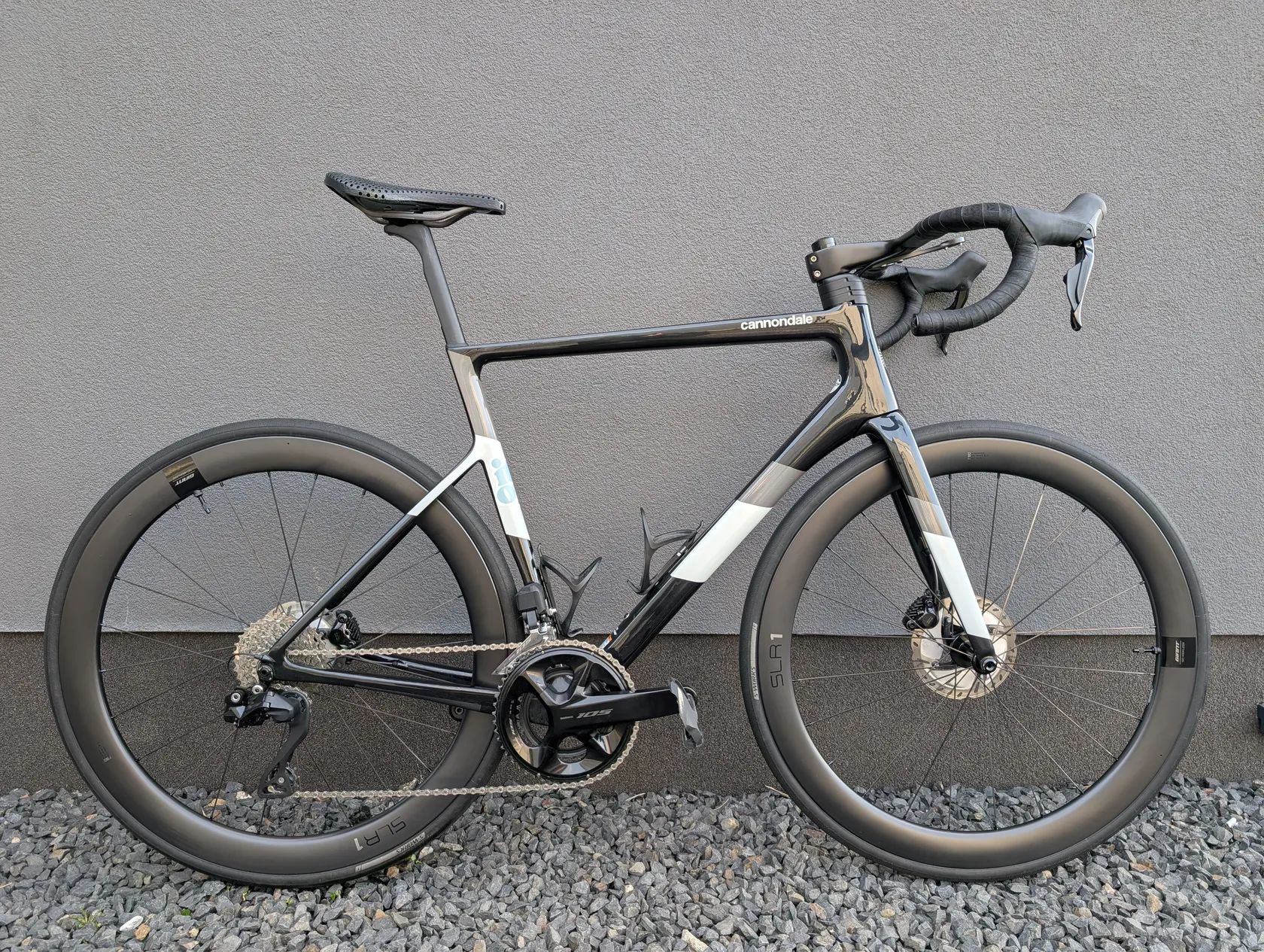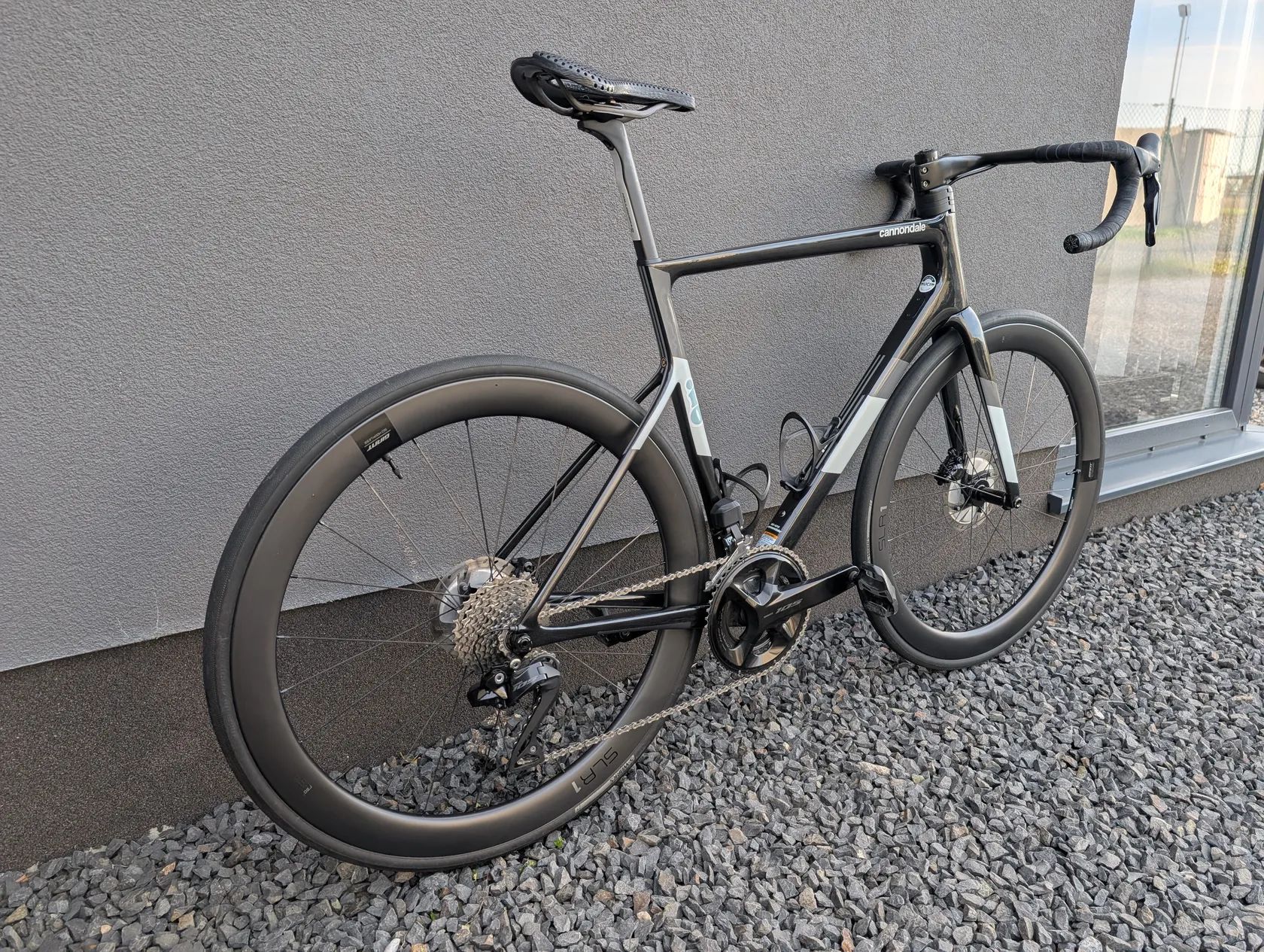 Nabízím karbonové silniční kolo Cannodale Supersix Evo 2022 Gen3 ve velikosti 56 na kompletní sadě Shimano 105 Di2 R7100 2x12. Již model s novým logem Cannondale. Barva Black Pearl, tedy perleť, která se na slunci krásně třpytí. Originálně je kolo Supersix Evo 105 Disc, ale je na něm provedena řada úprav a změn. Úpravy oproti originálu: Kompletní sada Shimano 105 Di2 2x12 R7100 (přehazovačka, přesmykač, kazeta, 170mm kliky s převodníky 50-34, páky, brzdiče + destičky, baterie, řetěz), karbonová sedlovka, karbonový integrovaný kokpit, hadice od brzd tažené kokpitem. Přestavba na novou, nejetou sadu Di2 proběhla v červenci 2024. Při té příležitosti se také dávalo nové středové složení Token. Sada a středové složení jsou tedy rok a půl staré a mají najeto necelých cca 3800km venku a cca 1800km na trenažéru (se Zwift cogem, tedy řazení se na trenažéru nepoužívalo). Kolo je ve skvělém stavu, na rámu nejsou žádné větší škrábance ani odřeniny, pouze minimální oděrky od běžného používání. Prostor pod řetězem a spodek rámové trubky polepen ochrannou fólií. Kde je odřenina je levá páka řazení, páka je ale samozřejmě zcela funkční a jedná se jen o kosmetickou záležitost. Rám a záruka stále nejsou registrované a ke kolu jsou všechny dokumenty a doklady, takže nový majitel si může celoživotní záruku na rám sám zaregistrovat. Prodej se dvěma košíky, s držákem Garmin počítače, s nabíjecím kabelem Shimano, bez pedálů a bez Posedla (na kole bude jiné sedlo). Přidám originální představec, hliníková řídítka a hliníkovou sedlovku.