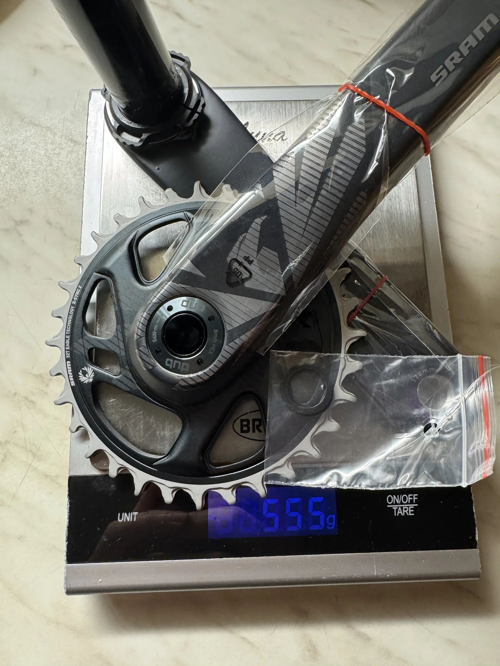 Ahoj, mam na prodej zcela nove karbonove kliky Sram X1 170 mm dlouhe a s 32z prevodnikem. Soucasti jsou i podlozky na pedaly, vaha klik vcetne ochranych obalu a podlozek 555g komplet.