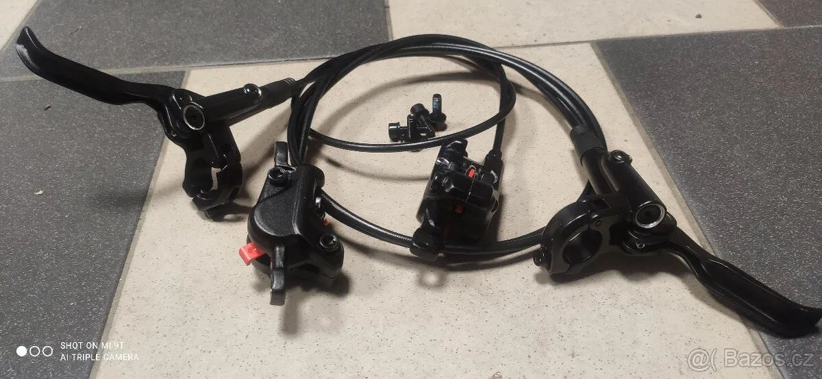Prodám sadu hydraulických kotoučových brzd s délkou př.73/z.146cm demondované z nového kola. Nepoužité. Naplněné, jen namontovat a brzdit.