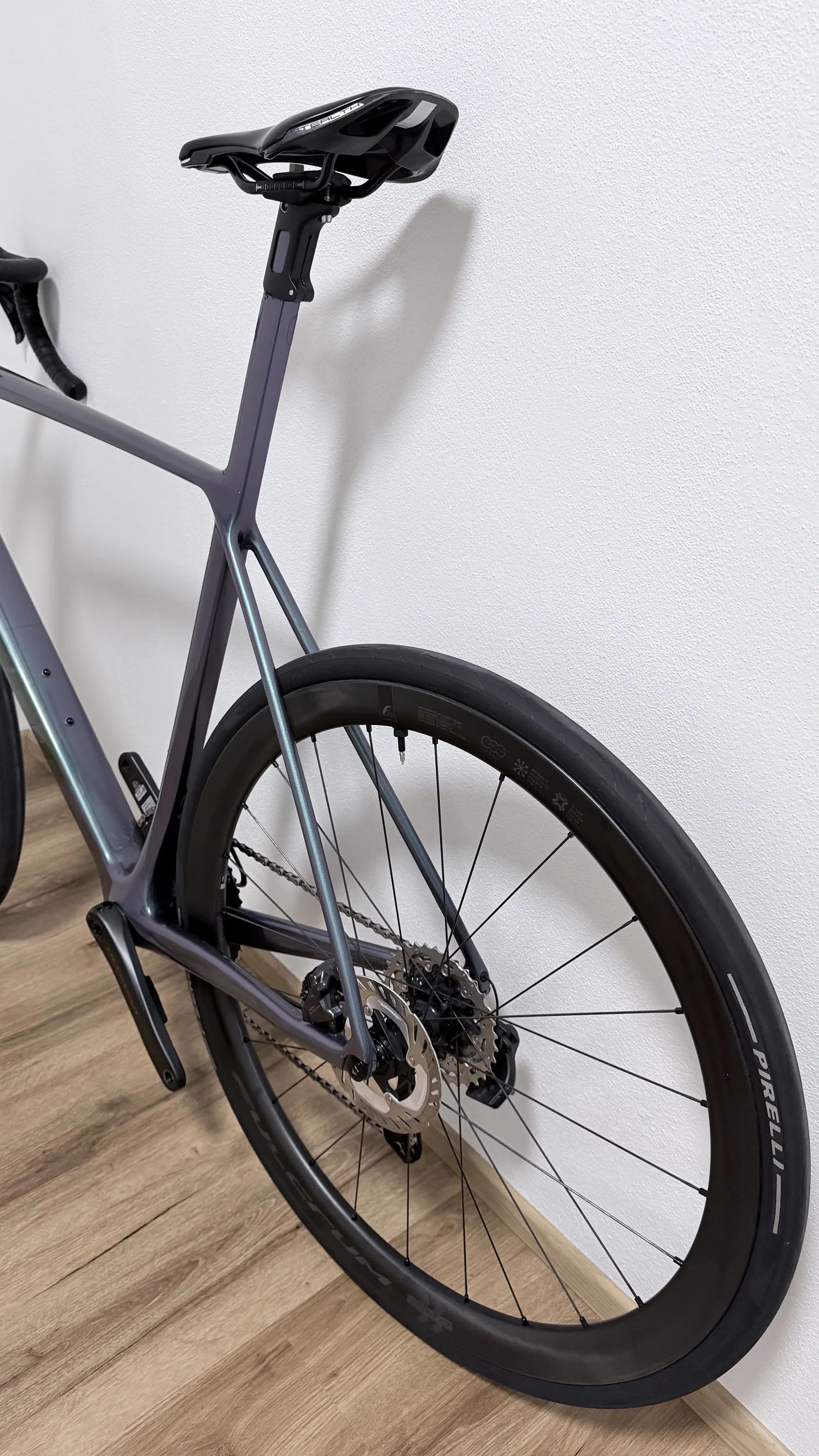 Zvládne i horší povrchy a rozbitější silnice díky 28mm plášťům, ale stále jde o čisté silniční kolo