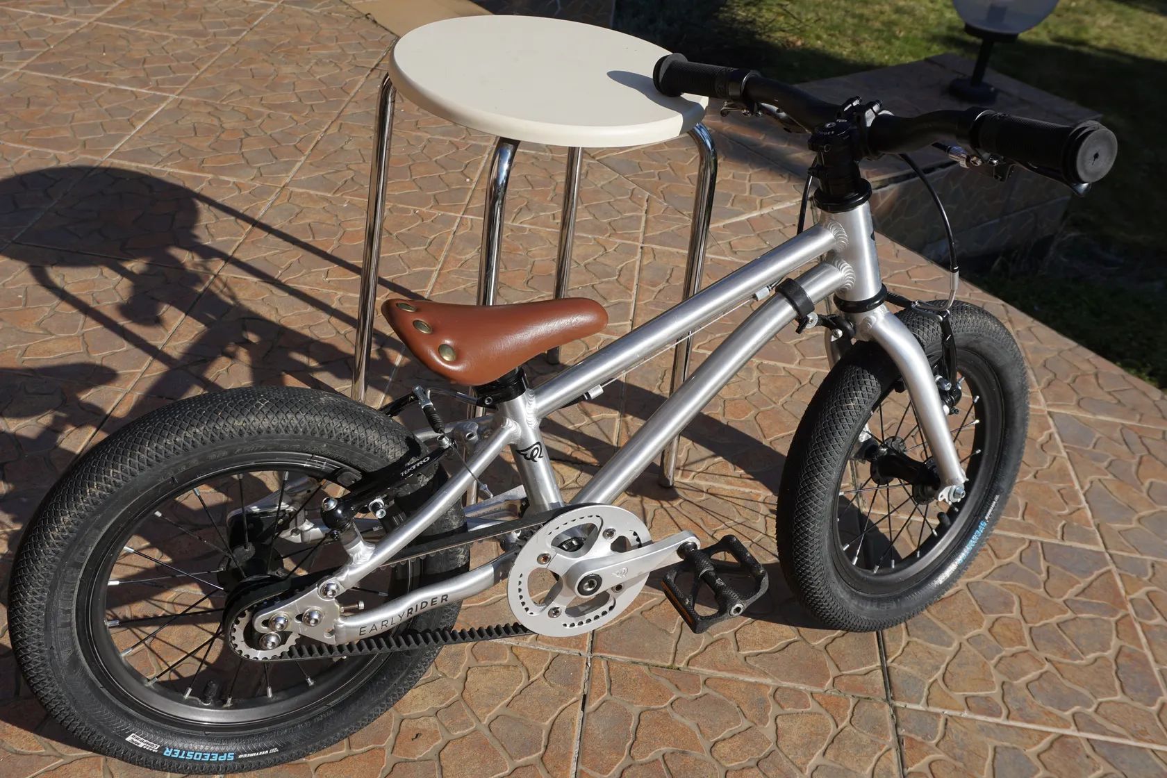 Prodám dětské kolo EarlyRider 14" s bezúdržbovým řemenem. Mohou na něm jezdit opravdu malé děti, výška sedla na fotografiích je 405 mm. Kolo je ve velmi slušném stavu, má drobné oděrky, ale jen v laku. Přidána pojistka proti přetočení řídítek (jako na kolech Woom). Kolo je připravené na sezónu, stačí nasednout a jet :-).