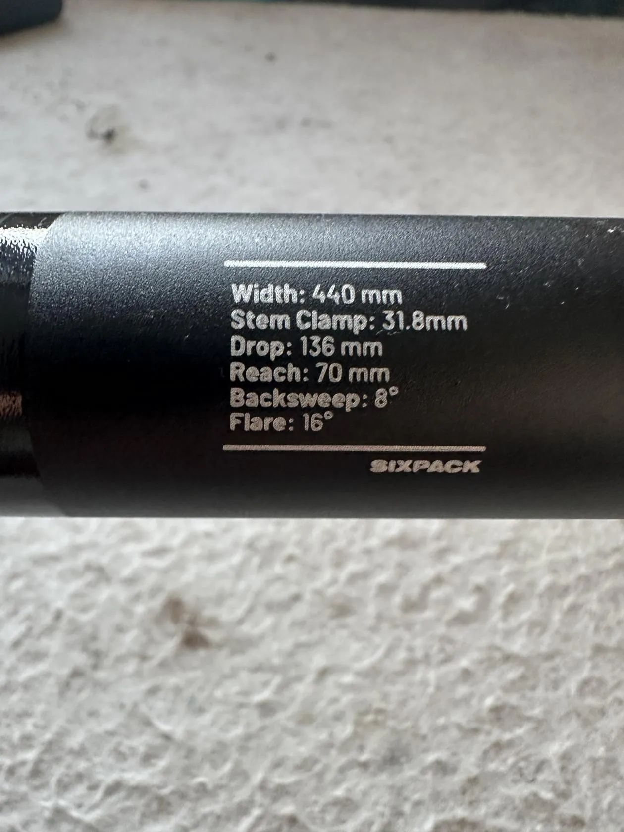 Nasazená a zase sundaná řídítka Sixpack Gravel 440m. Parametry na foto. Nesedí tvar.
