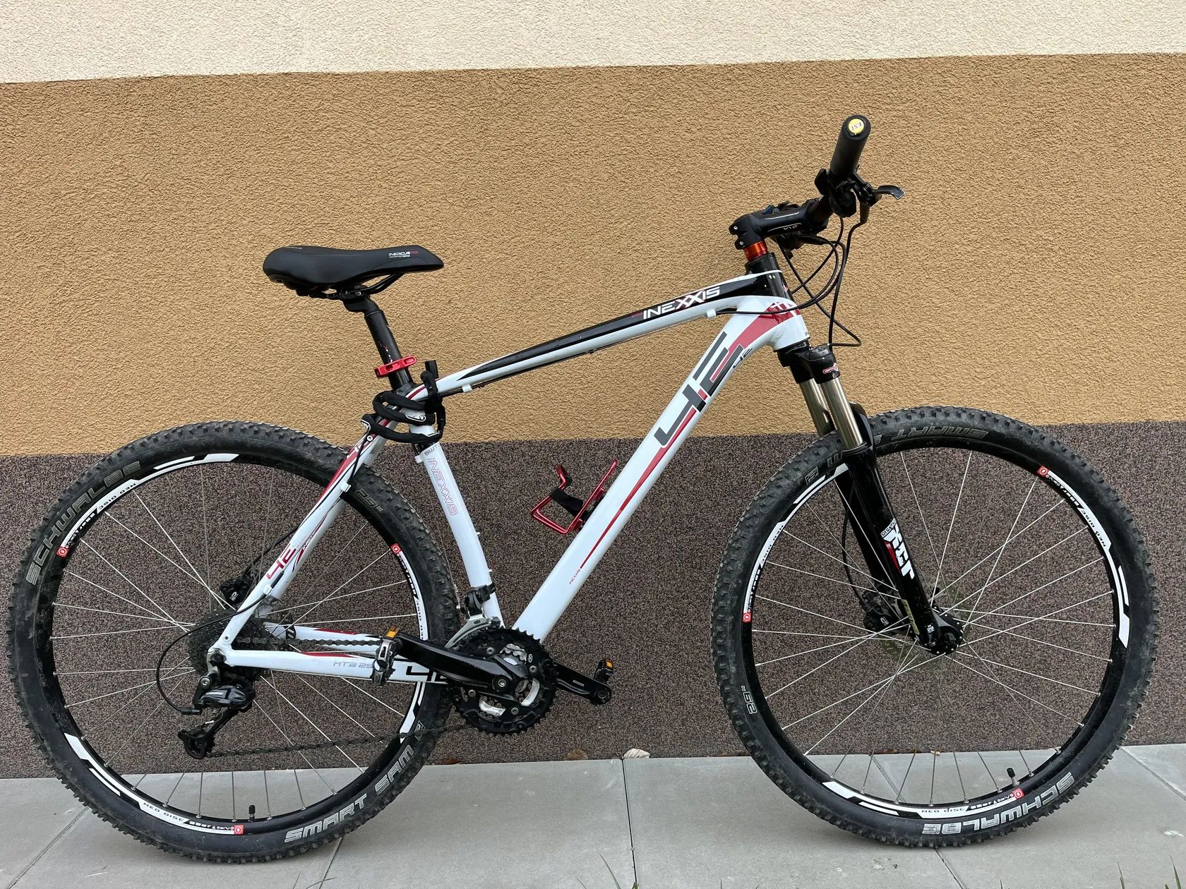 Prodám horské kolo postavené na kvalitním rámu české značky 4Ever (technologie Frame Innovation Technology). Kolo je na velkých 29" kolech, což zajišťuje skvělou stabilitu a rychlost. Technické parametry: Rám: INEXXIS (by 4Ever), materiál Aluminium 6061 (odlehčený, technologie HTB) Kola: 29" s dvoukomorovými ráfky (pro kotoučové brzdy) Pláště: Schwalbe Smart Sam (univerzální vzorek do terénu i na silnici) Vidlice: SR Suntour XCR 29" se zamykáním z řídítek (Remote Lockout) Brzdy: Hydraulické kotoučové Shimano (minerální olej) Řazení: Shimano Alivio (3x9 nebo 3x10 převodů dle aktuálního počtu koleček) Přehazovačka: Shimano Deore (přesné a spolehlivé řazení) Kliky: Shimano (systém Octalink nebo Hollowtech) Představec/Řídítka: DNA (originální komponenty 4Ever) Sedlo: Selle Royal / Inexxis Doplňky v ceně: Držák na lahev (červený elox) Rychloupínák sedlovky (červený elox) Pohodlné gripy Stav: Kolo je plně funkční, má drobné oděrky odpovídající běžnému používání. Ideální stroj na rekreační ježdění, cyklostezky a lehký terén.