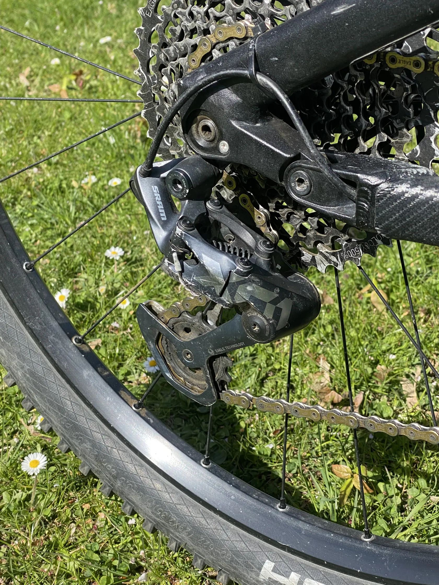 Pohon: kombinace SRAM GX Eagle (řazení, kliky) + SRAM X01 přehazovačka – vyšší třída 1x12, vhodná i pro sportovní nasazení.