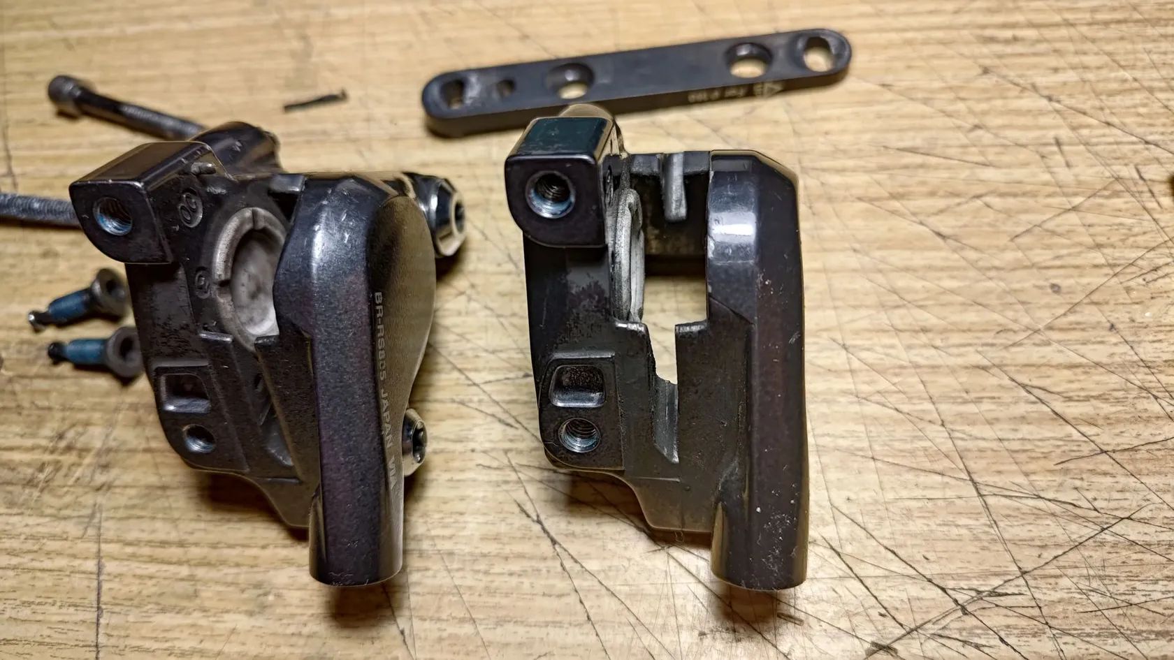 Starší brzdové třmeny. Byly funkční, pístky se vracely v pořádku. Před použitím bych ale doporučil repas. Rozdělat a vyčistit.