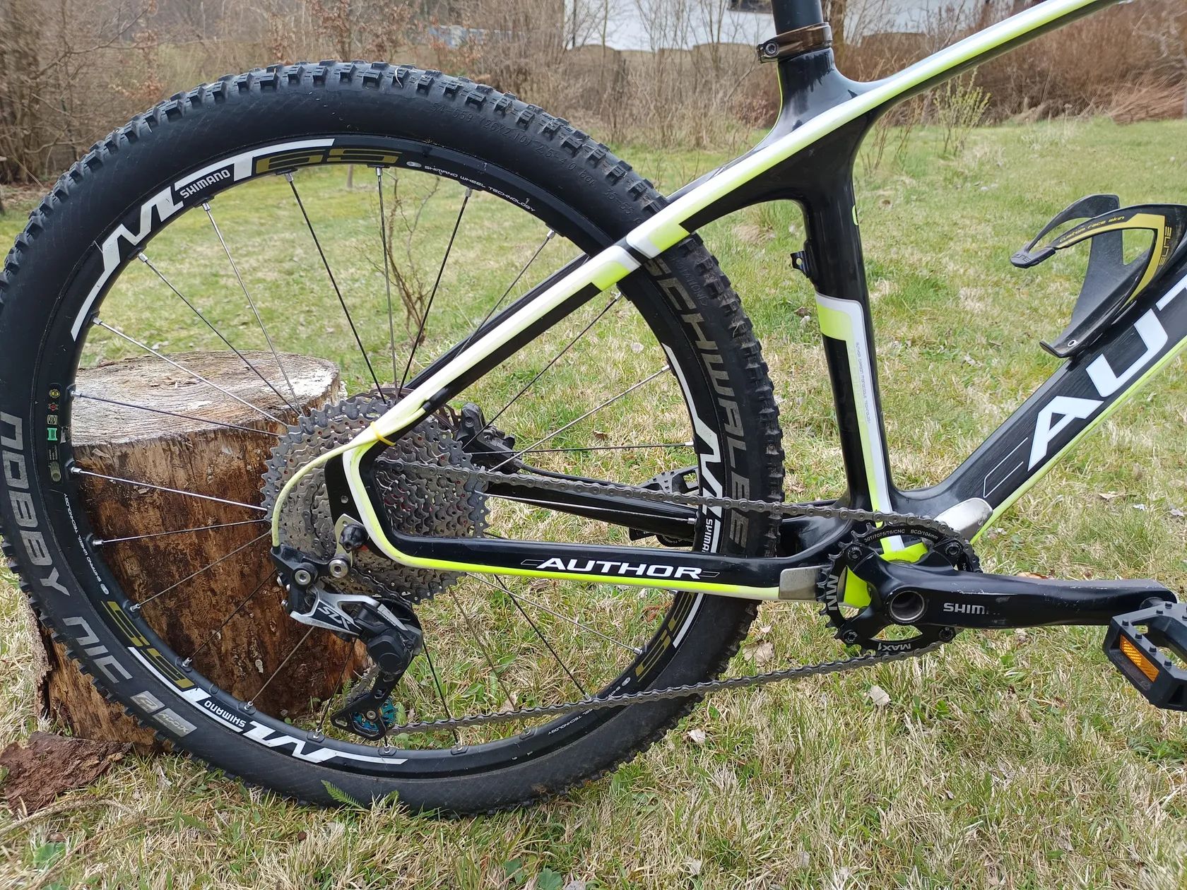 Prodám bika po dceři, rám carbon, vel. 16 " (S) , vidlice Manitou R7 s LO z řídítek, kola Shimano + obutí Schwalbe, možno připraveno na bezdušové provedení, řazení Shimano SLX 1x11 (kazeta 11-46), hydraulické kotoučovky,