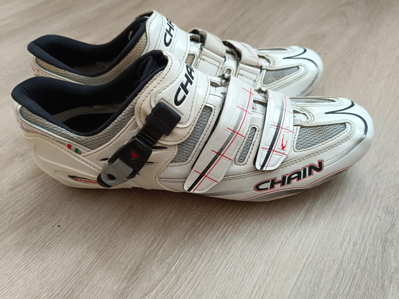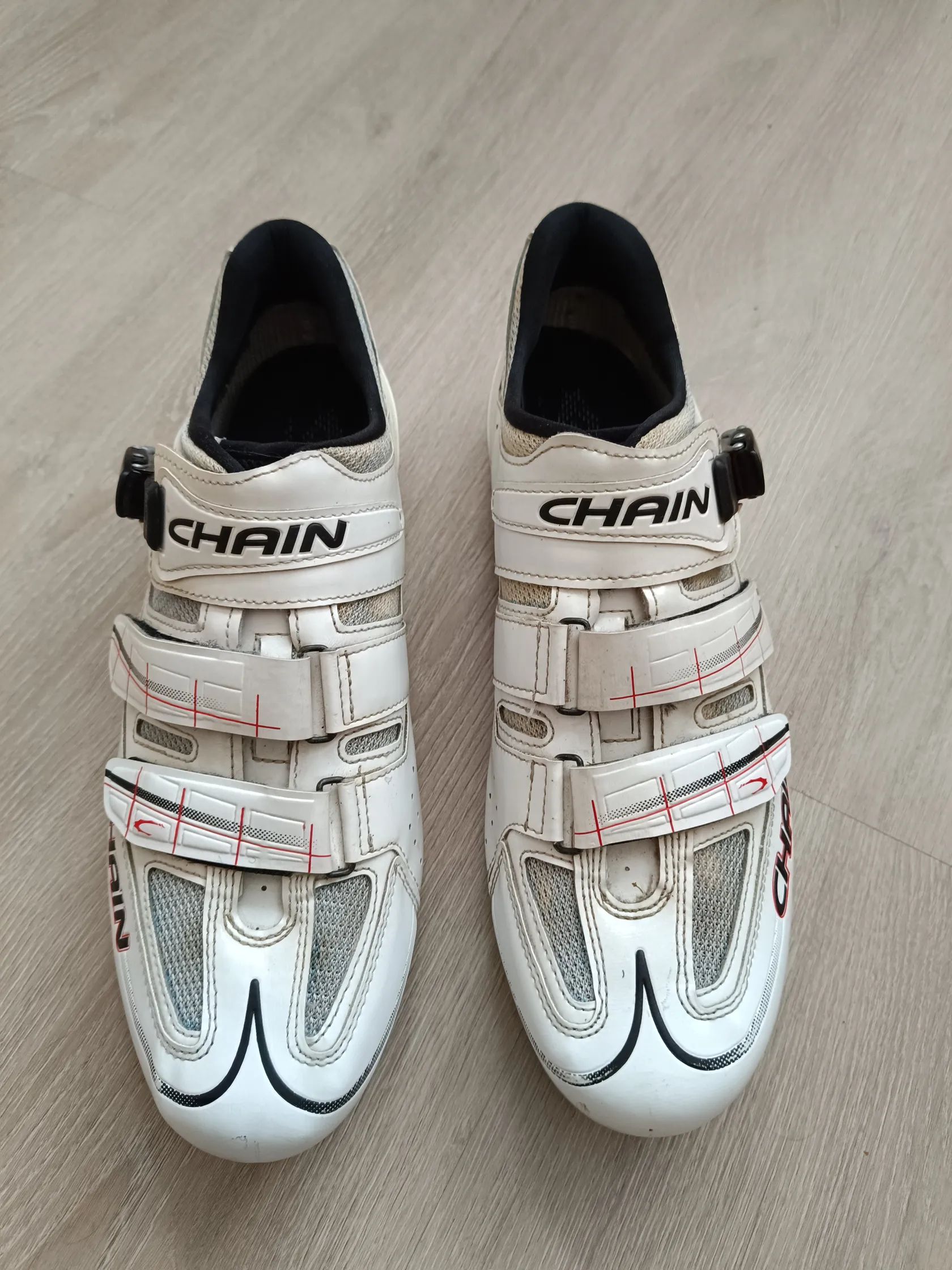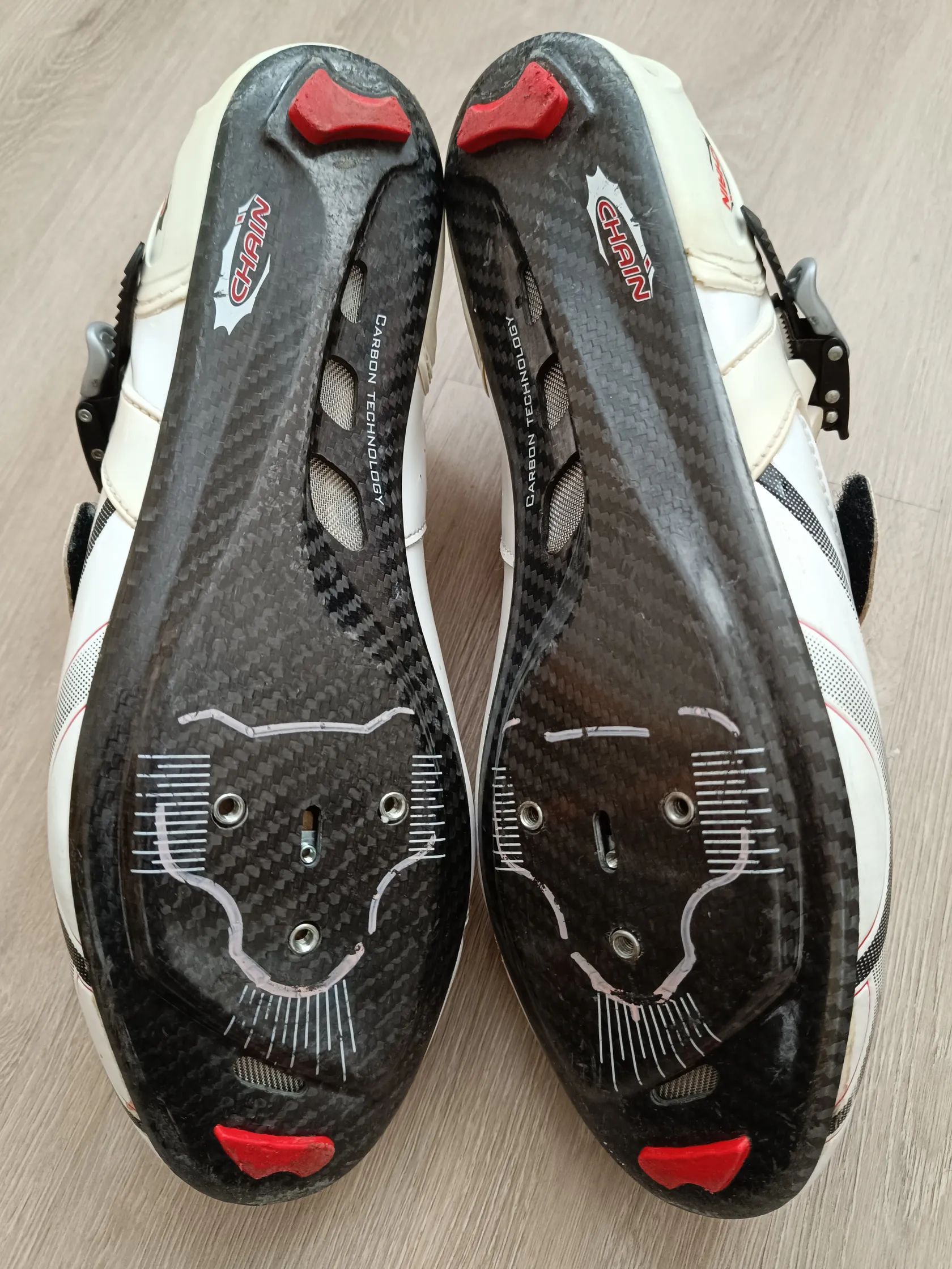 Prodám starší, ale minimálně používané tretry italské značky Chain s tuhou karbonovou podrážkou. Tretry jeví známky používání, ale ještě dobře poslouží.