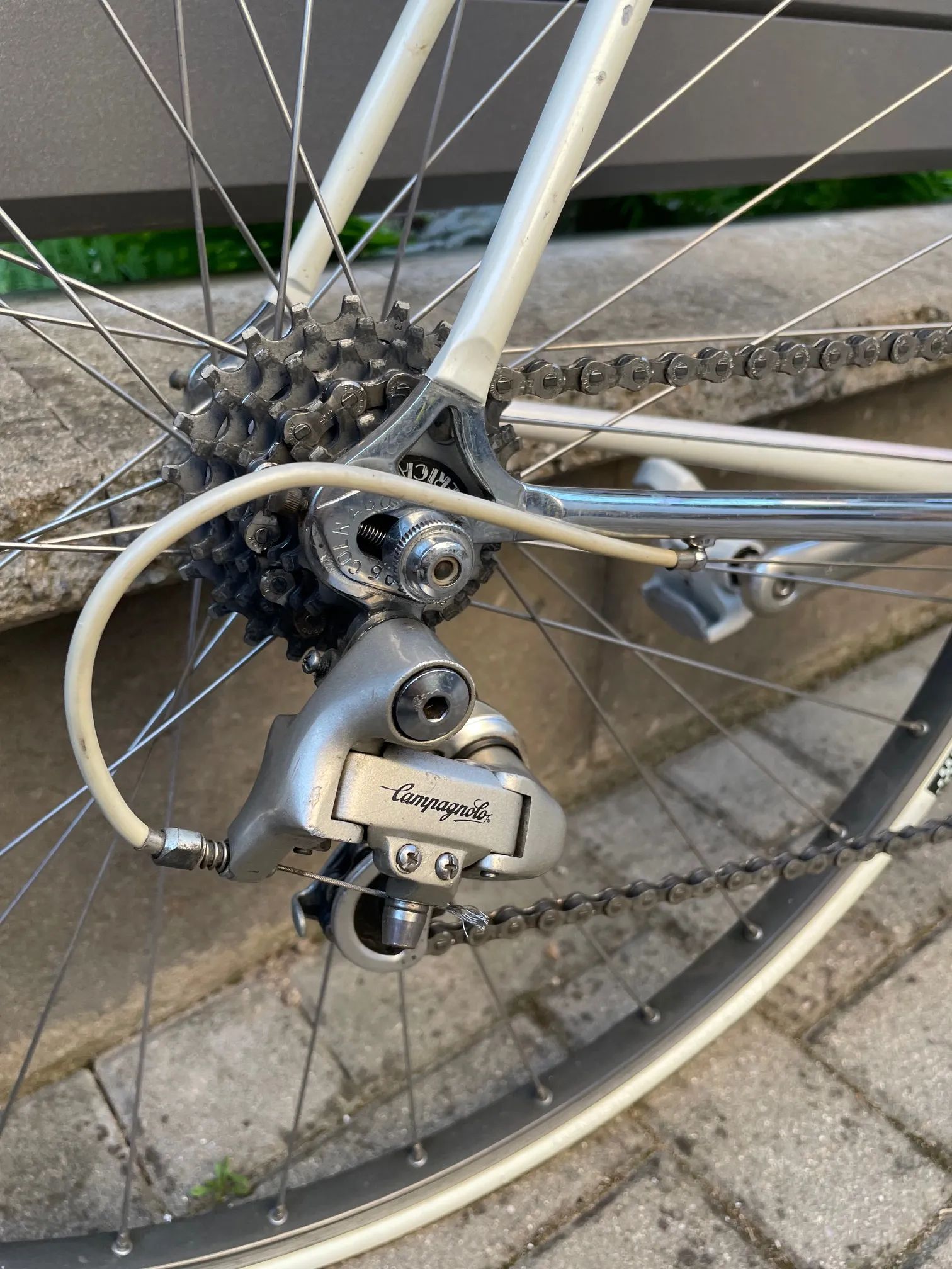 Kompletní Campagnolo 2×7 s řazením na rámu a indexací – kvalitní dobové závodní osazení