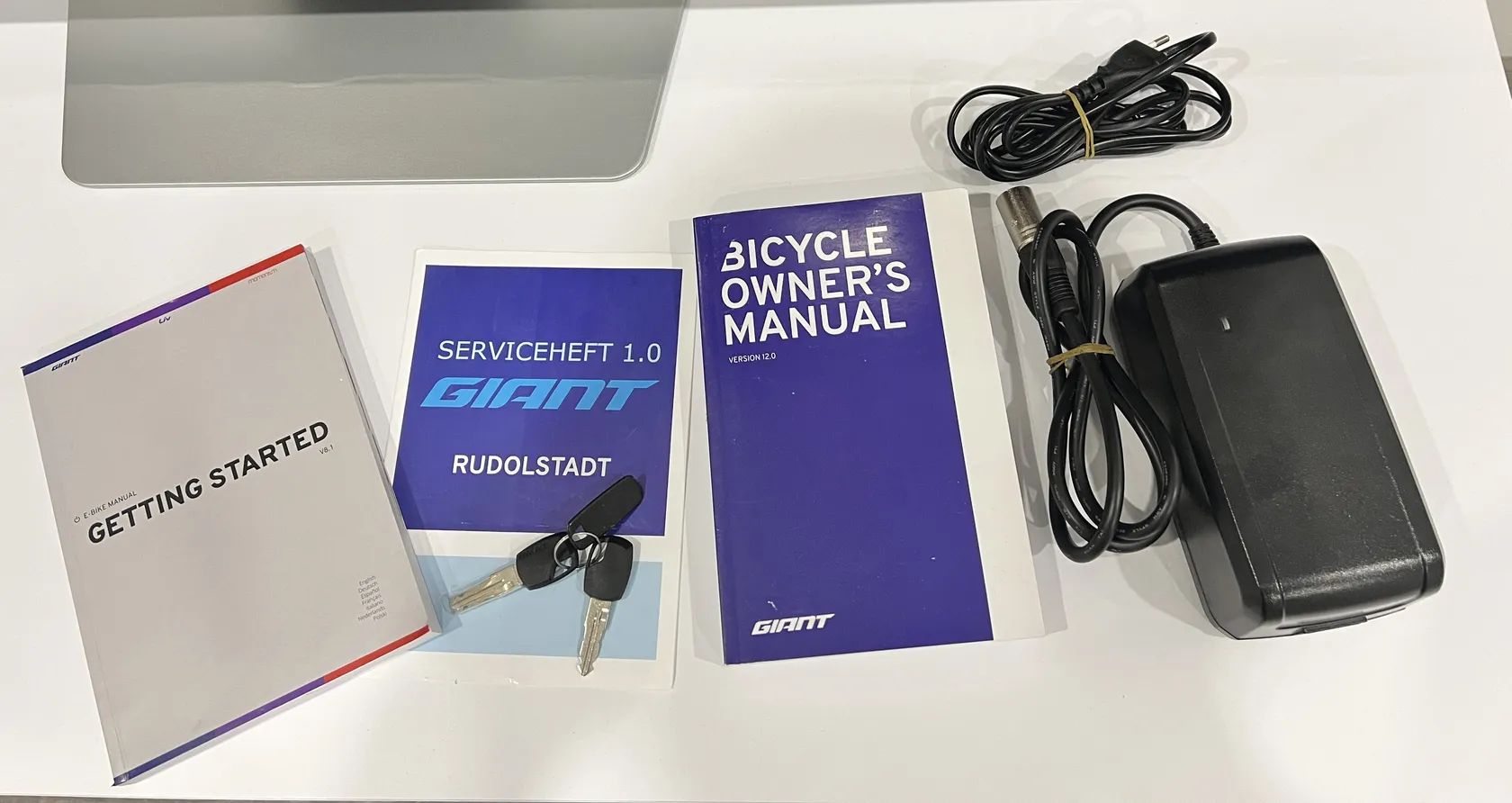 Doklady, manuály, nabíječka na 4A a dva originální klíče.