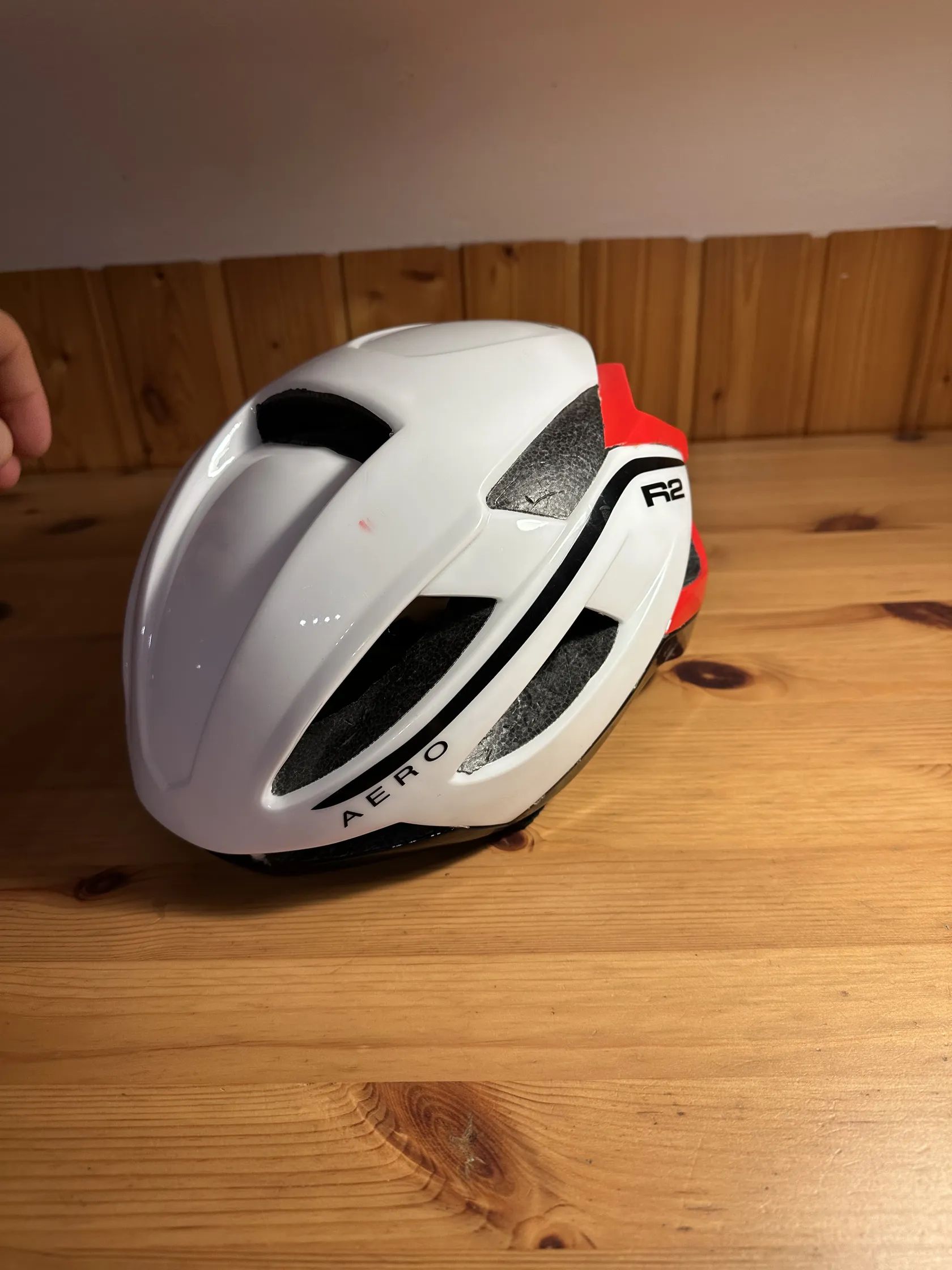 Ahoj, prodám R2 Aero helmu vhodnou na silniční nebo i horskou cyklistiku. Původní cena byla 2000Kč. Použitelná je samozřejmě např. na kolečkové Brusle. Helma je ve skvělém stavu, jen kolečko vzadu na utahování není moc funkční. Někomu ale může sedět velikost, na kterou je momentálně stažená. Popruhy samozřejmě fungují. Nechávám ji proto za malou cenu pro někoho, kdo si kolečko nechá opravit / opraví si ho sám. Vnitřní délka (od místa vzadu, kde je kolečko na utažení): cca 20cm. Vnitřní šířka je cca 17,5cm