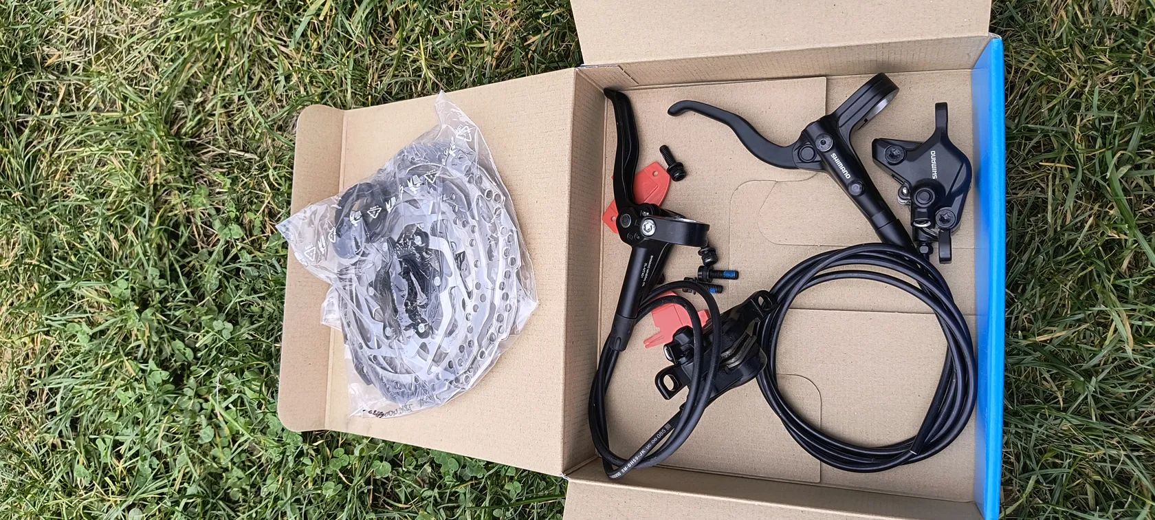 Ahoj, prodám sadu kotoučových brzd Shimano MT401, mírně jeté vč. kotoučů. Cena za komplet 600 Kč + poštovné.
