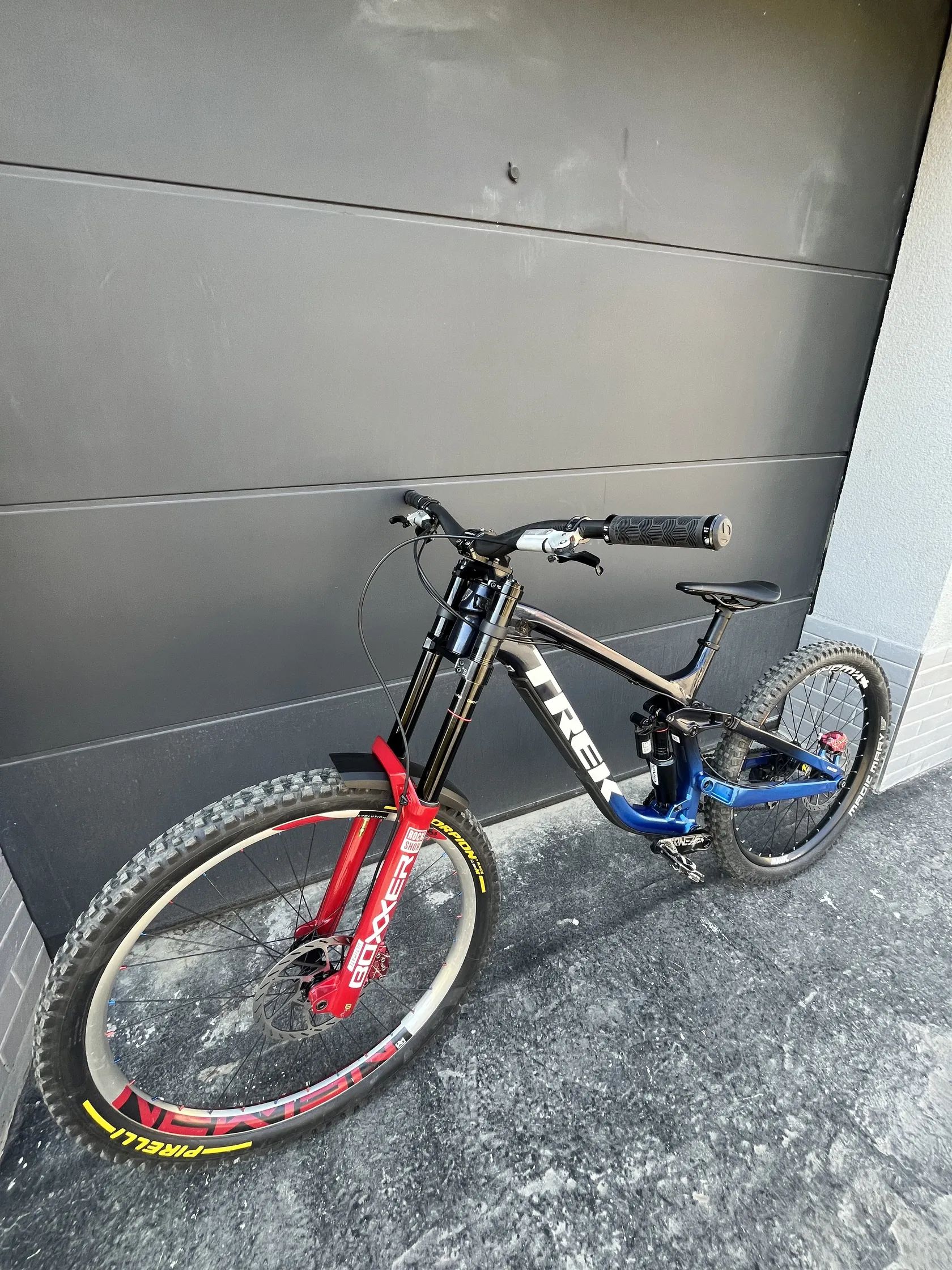 Ram: session r3 moznost mullet / full 29" Vidlica: rs boxxer ultimate Tlmic: rs vivid air ultimate Brdy: sram maven ultimate ltd Kokpit: predstavec pro tharsis, rajdy race face era carbon 800mm Pohon: sram gx len radenie X01 ( o chain dohodou) Kolesa: 1. Set Mullet : predne newmen priamo od nich stavane custom build, zadne mavic deemax 2. Set full 29" : bontrager line dh