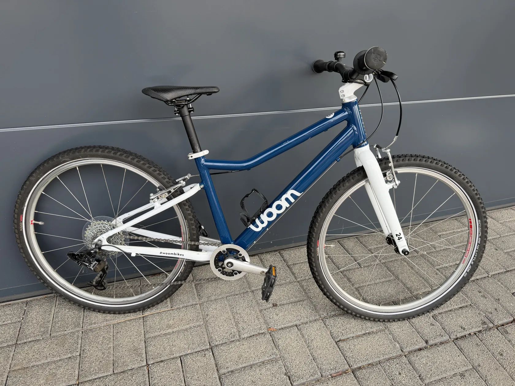 Prodám dětské kolo Woom 5 (24”) v modré barvě. Lehké a kvalitní kolo vhodné pro děti přibližně 125–145 cm.