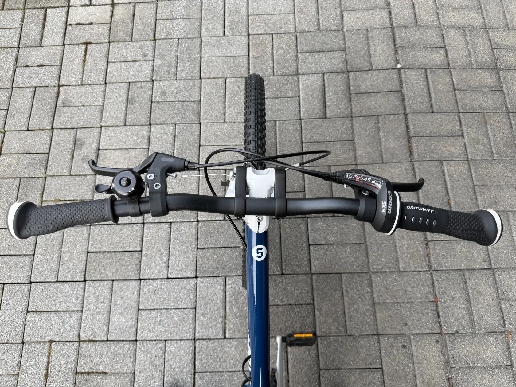 Kolo je plně funkční a ve velmi pěkném stavu, na horní rámové trubce je drobná oděrka od běžného používání (viz foto). Vše funguje jak má – brzdy, řazení i ložiska.