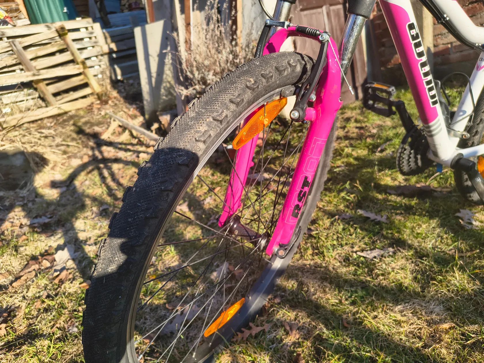 Dobrý den, prodám ve své třídě jedno z nejlehčích kol. Kolo je používané, nicméně každý rok servisované. Na kole se jezdilo pouze na cyklostezkách. Kolo má odpruženou vidlici. Brzdy Vbrake, brzdí skvěle. Protože dcera měla problém s přehazováním, původně na kole byl grip shift, proběhla výměna na páčkové řazení. Počet rychlostí je na kole 3 x 6. Na kole nechám košík, světla a stojánek. Pláště jsou ještě hodně dobré. Původní cena kola byla 15000,-. Podívejte se na fotky, pokud jakýkoliv dotaz, neváhejte mne kontaktovat. Ještě mám jedno stejné kolo, ale stříbrné. Jako důvod prodeje, holky z nich už vyrostli. Musím pořídit větší.