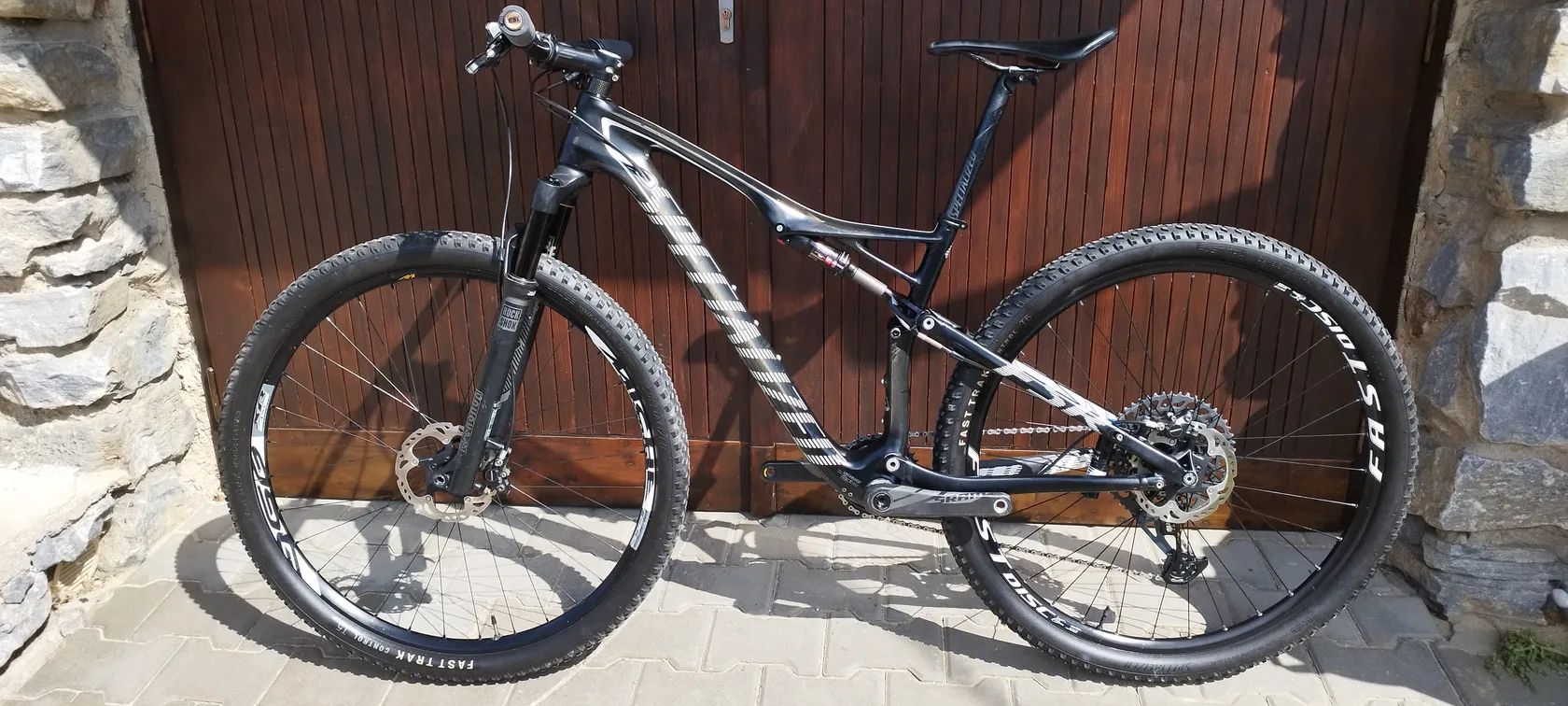 Rám: přední stavba Carbon. zadní stavba Al Rám je polepen ochranou folií. Střed: PF 30BB -loni nový Vidlice: Rock Schox Sid Brain Tlumič: Fox Brain Řidítka: Specialized carbon 740mm Představec: Specialized Al 95mm Sedlo: Specialized Power Expert 143mm Sedlovka: Specialized Al 27.2 350mm Brzdy: Shimano XT Brzdové kotouče: Shimano SM-RT 86 160mm loni nové