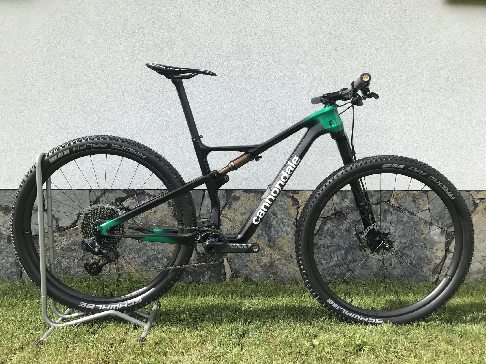 Rám – Scalpel Hi-Hod Carbon, FlexPivot Chainstay, PF30-83, Tapered Headtube Vidlice - Lefty Ocho Carbon, 100mm, remote lockout Tlumič - Fox Float DPS Performance Elite EVOL, remote lockout Remote lockout vidlice a tlumiče – Fox Remote Kliky - SRAM XX1 Carbon Eagle, 32T Kazeta - SRAM XG-1295, X01 Eagle, 10-52 Řetěz – SRAM XX1 Eagle, Rainbow Přehazovačka – SRAM XX1 AXS Řazení – SRAM XX1 AXS Brzdy – Shimano XT Zapletená kola – HollowGram 25, Superlight Hi-Impact Carbon, DT Swiss náboje Pláště – Schwalbe Racing Ralph Performance, Schwalbe Racing Ray Performance Řídítka - Cannondale 1 Flat, Carbon, 31.8mm, 9° back, 760mm Představec - Cannondale 1, 7075 Alloy, 1-1/8", 31.8, 7° Sedlovka - Cannondale 1, UD Carbon, 31.6 x 400mm Sedlo – Force Team Hole karbon