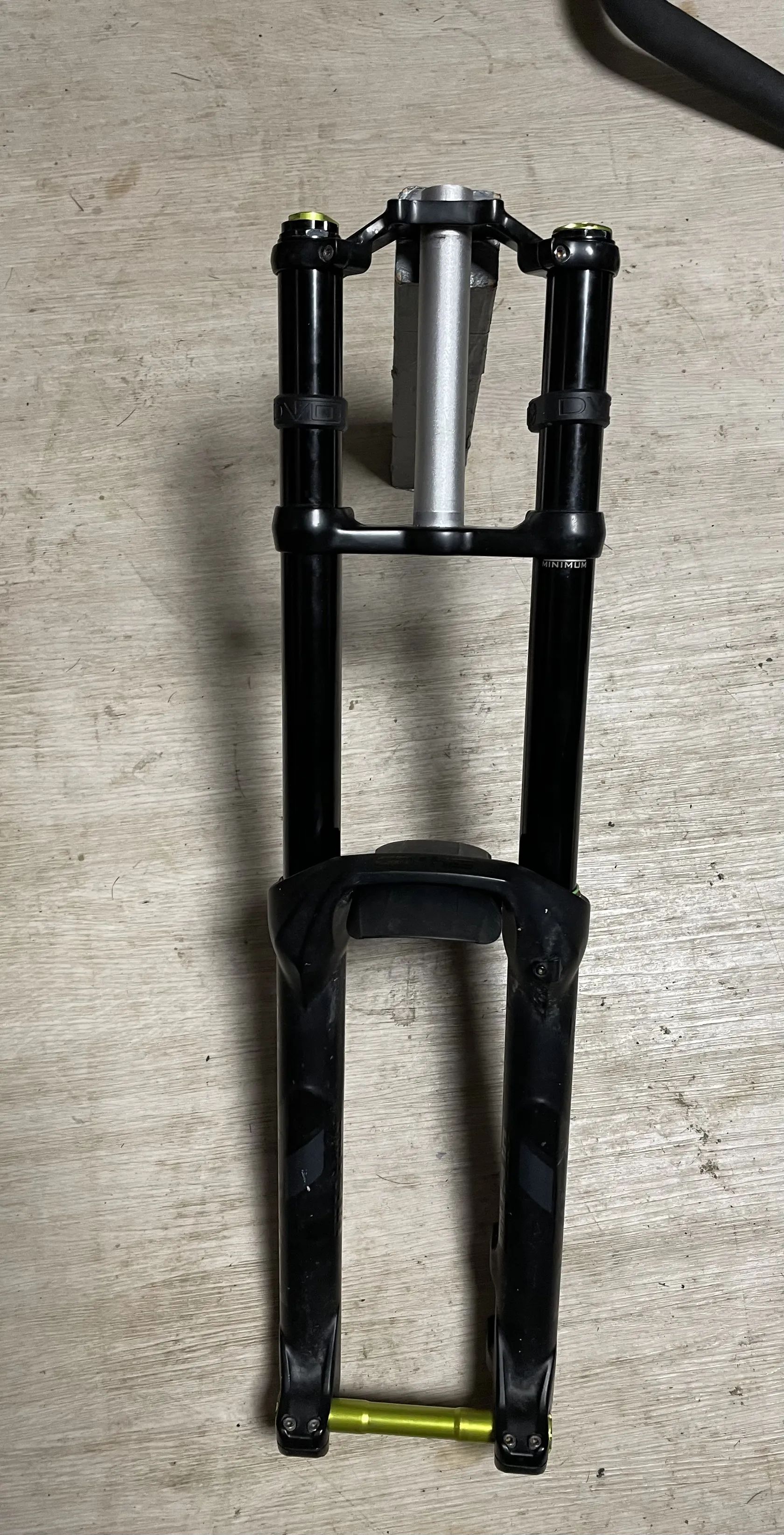 Prodám vidlici DVO Onyx DC vidlice je ježděná tři sezóny. Má oděrky i na kluzáku,ale rozleštěno a na funkci nemá vliv. Neteče. Po každé sezóně výměna oleje a gufer. K vidlici nízká i vysoká korunka.