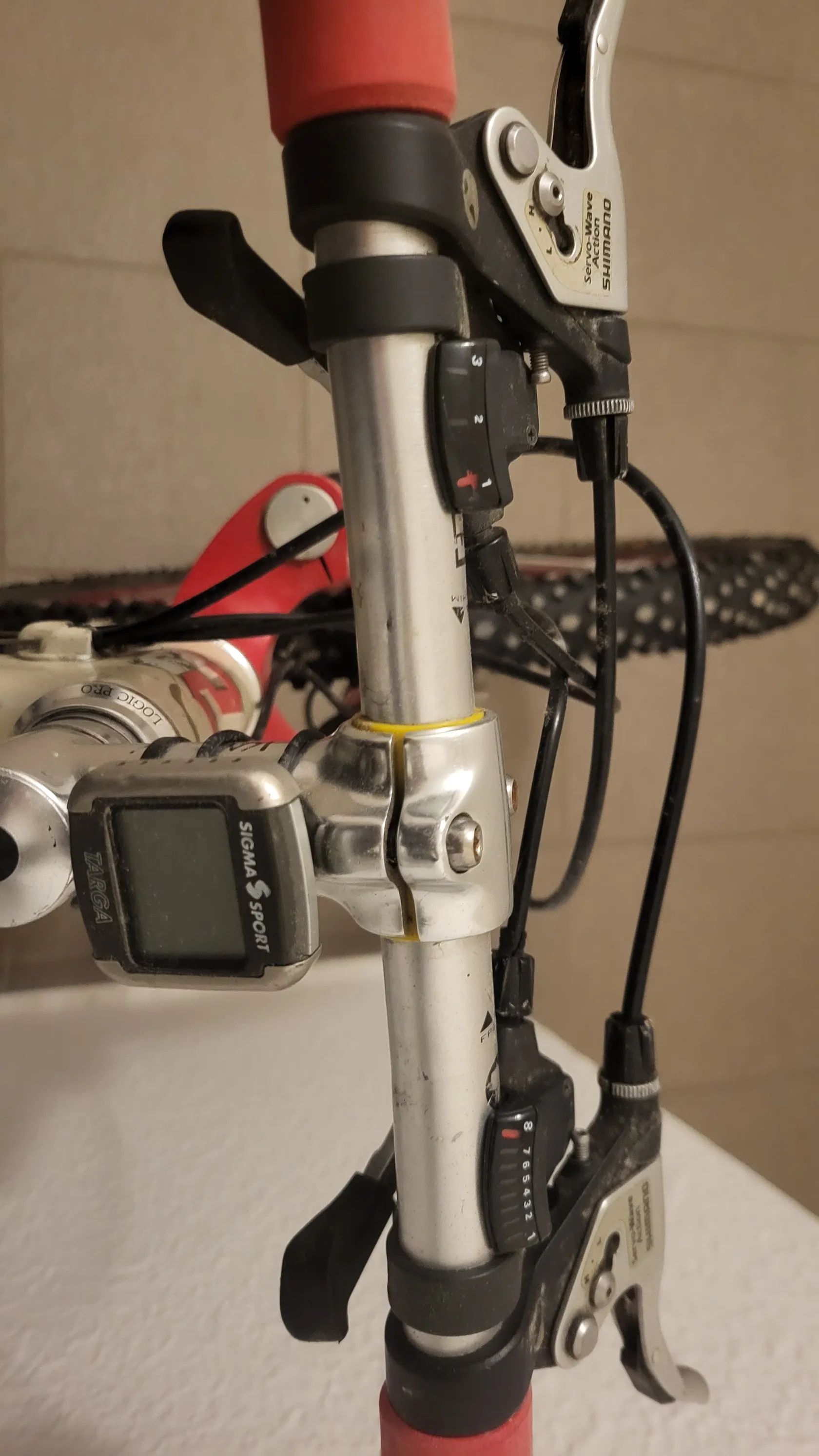 Krásný XC maratónský kousek. Jsem třetí majitel, druhý v ČR. Dovezeno z Kanady 1996, mnou koupeno 1998. Přední vidlice legendární české Kangaroo, zadní tlumič Dnm. Oboje pružina-olej. Řazení, brzdové páčky Shimano XT, brzdy Avid (v té době nej kombinace). Náboje Shimnano LX, ráfky Sun Rims, pláště Continetal. Jako bonus cyklocomputer Sigma Targa. Kolo je zcela funkční, jen stálo několik let ve sklepě a potřebuje běžnou péči.