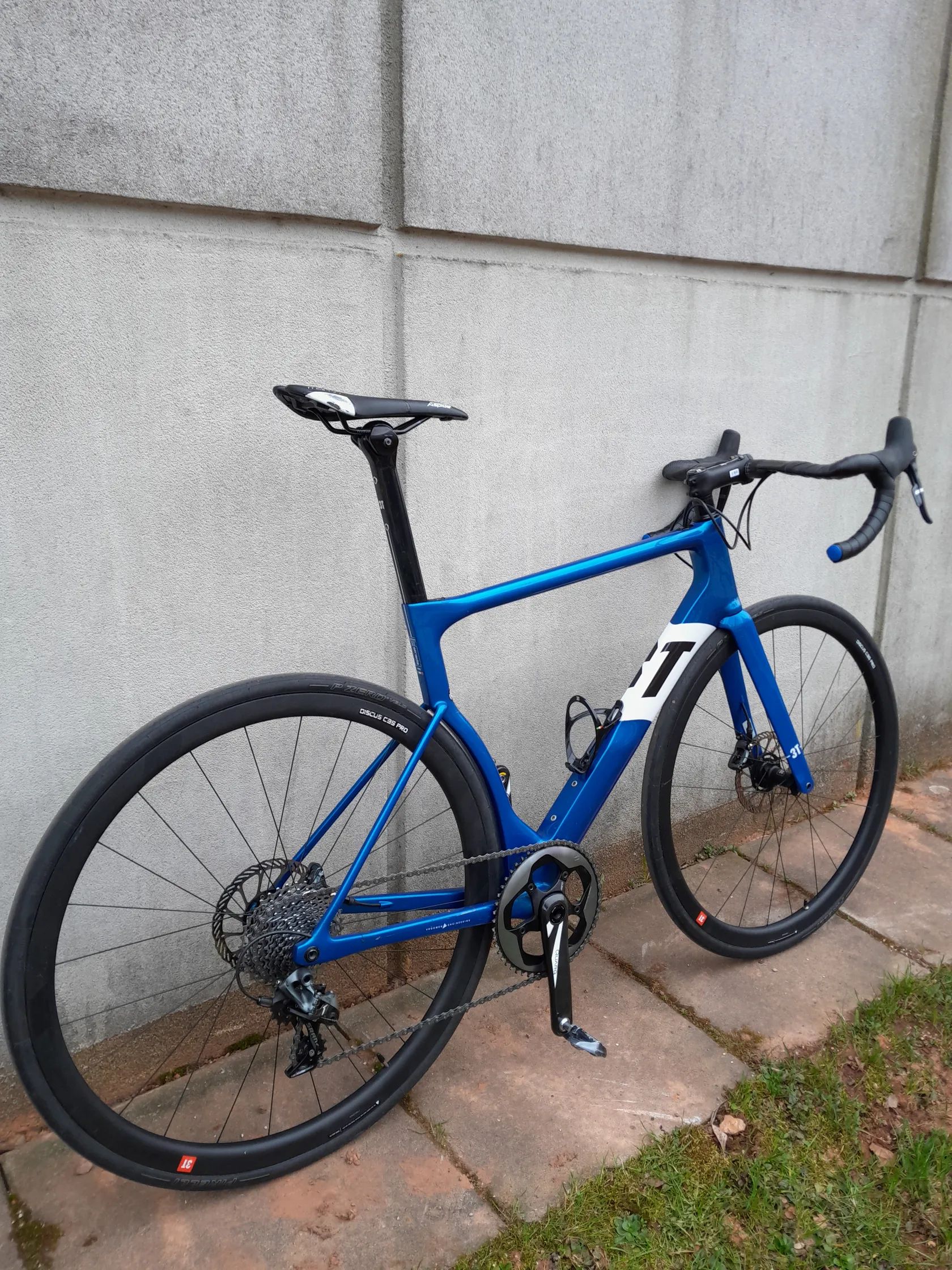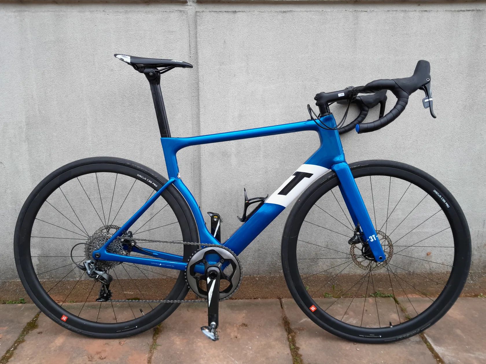 Silniční kolo 3T Strada 2020 - velikost L(56) Rám a vidlice: karbon Pohon: 1x11 Sram Force - 50zx11-36z Brzdy: hydraulické Představec: 3T Apto Pro hliník Sedlovka: Charlie Sqaero Strada karbon Řidítka: 3T Aeronova Team Stealth karbon Sedlo: Sella San Marco Aspide 2 Pláště: Pirelli P Zero™ Velo 700 x 25c Kotouče: SRAM Centerline 160 mm Kola: Discus C35 PRO (700c)