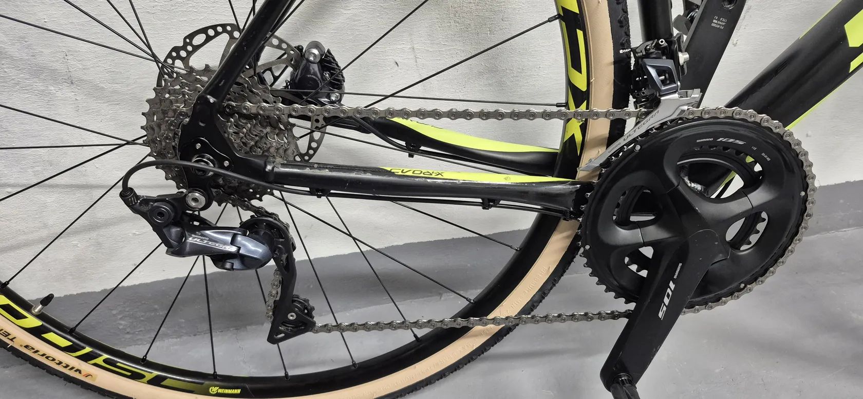 Kolo s alu rámem ze třikrát zeslabované slitiny hliníku vidlice karbon v predu i vzadu pevna osa o pohon se na tomto kole postará mechanická sada Shimano ultegra r8000 2x11 kliky jsou 105. Bezpečí zajišťují hydraulické kotoučové brzdy, které vás zastaví i za špatného počasi.