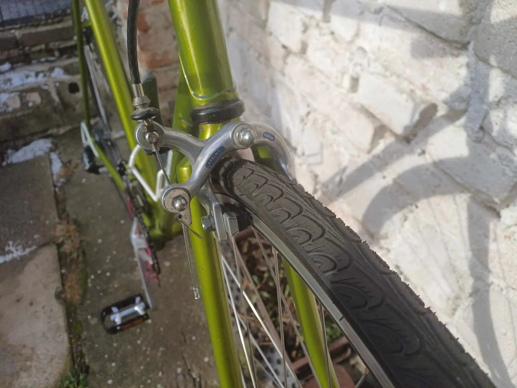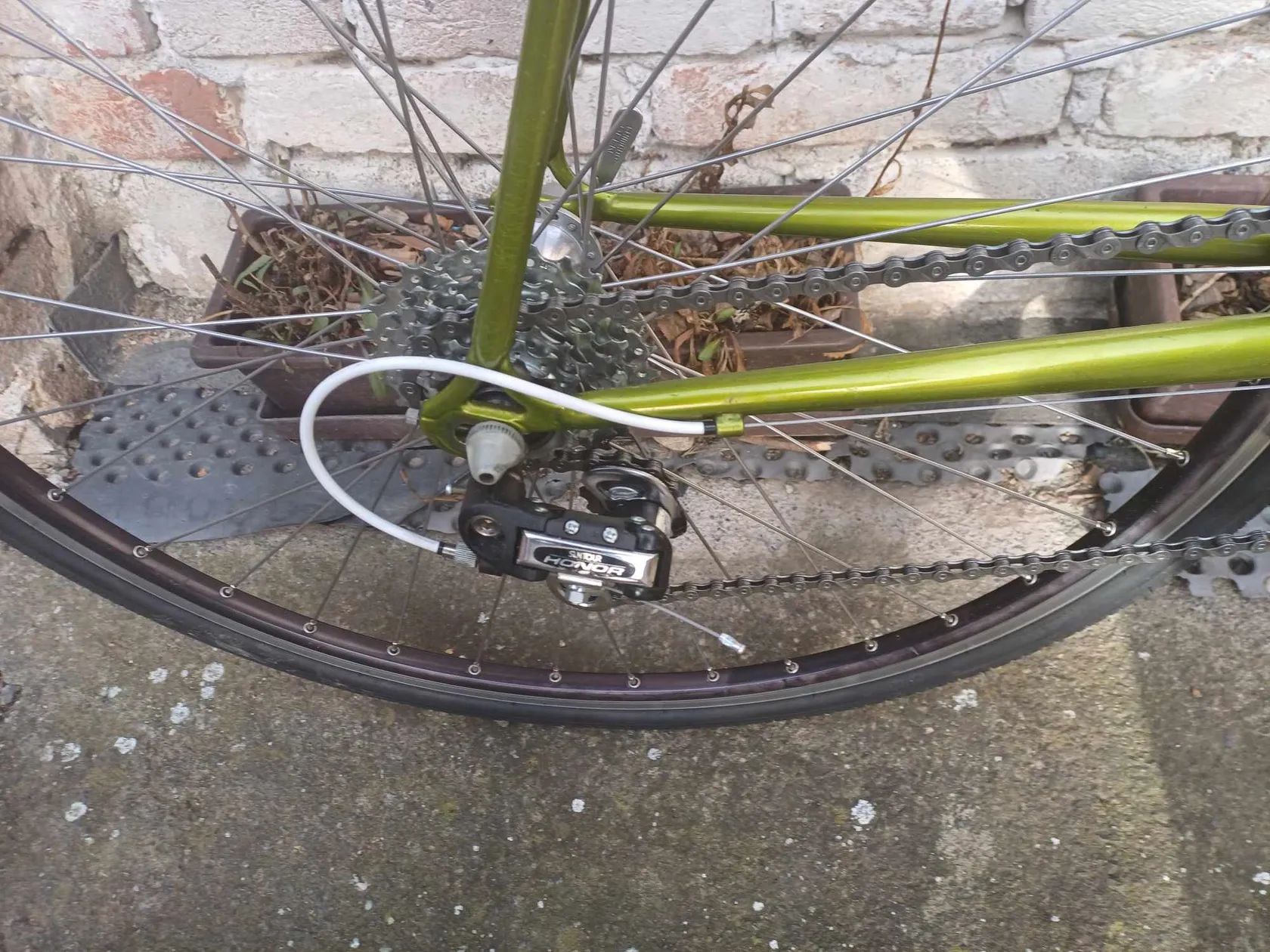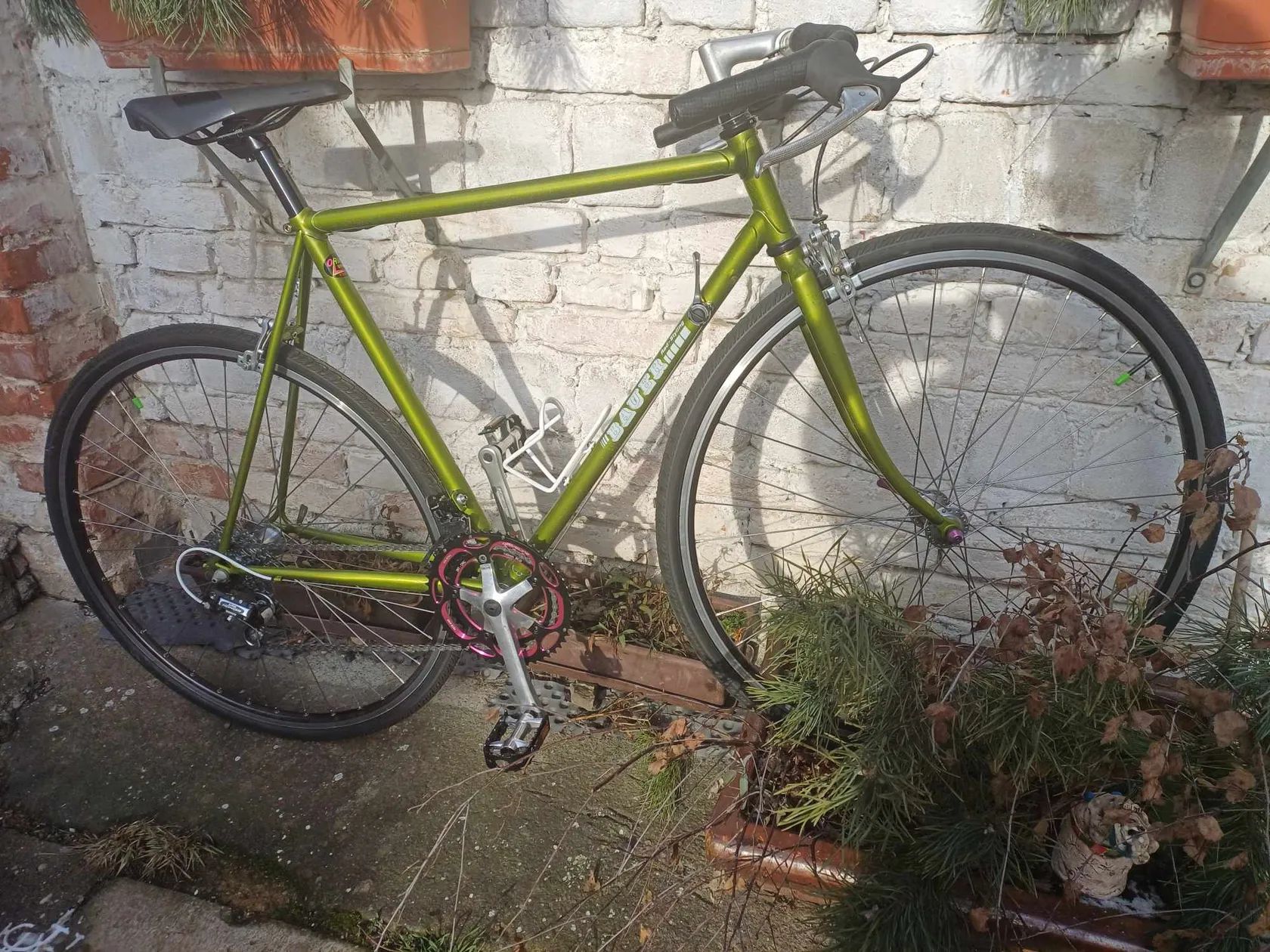 Nabízím silniční kolo s rovnými řídítky v klasickém uspořádání´. Velikost rámu je 54 cm osa x osa. Mix součástek - Suntour, Sachs, nerezové výplety, převody 2x6 indexované, ráfkové brzdy, pláště. Kolo má parametry l´Erioca. Možnost osobního vyzkoušení rakovnicko nebo po domluvě někde v Praze 6. Neposílám kurýrem.
