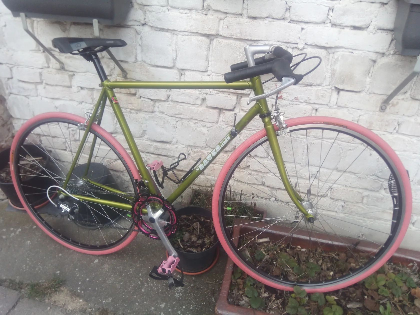 Nabízím silniční kolo s rovnými řídítky v klasickém uspořádání´. Velikost rámu je 54 cm osa x osa. Mix součástek - Suntour, Sachs, nerezové výplety, převody 2x6 indexované, ráfkové brzdy, pláště. Kolo má parametry l´Erioca. Možnost osobního vyzkoušení rakovnicko nebo po domluvě někde v Praze 6. Neposílám kurýrem.