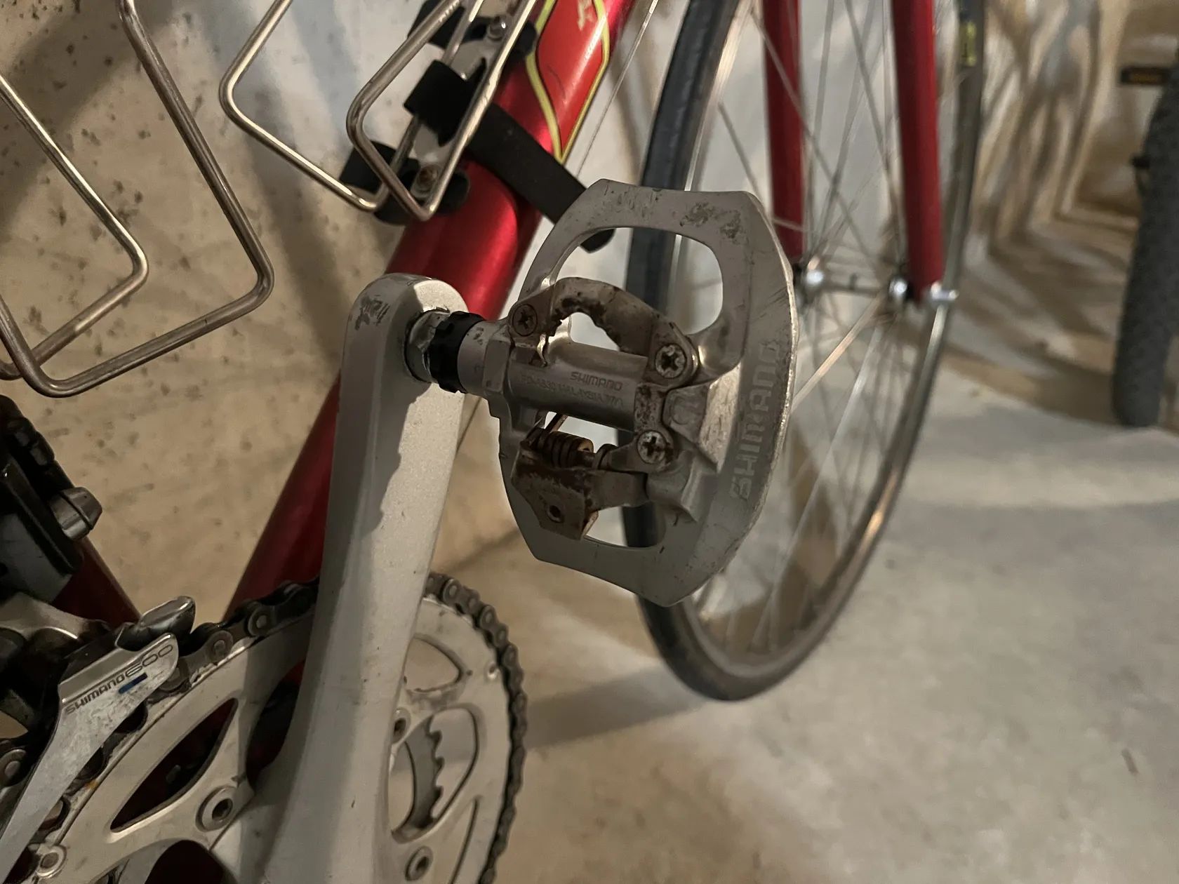 Nabízím za symbolických 1500,- na “dožití” pro fanoušky značky :). Staří kolem 20 let, posledních 10 let ježděno minimálně. Vel. myslím 54 (pro jezdce +/- 175 cm), 2x7 rychlostí, nový zadní plášť Lugano kevlar 700x30, vč. pedálů, které nejdou sundat. POZOR: Vyžaduje nové zadní kolo (prokluzuje střed)!!! Tj. oprava a investice nutná. Pouze osobní předání v Brně Kr. Poli.