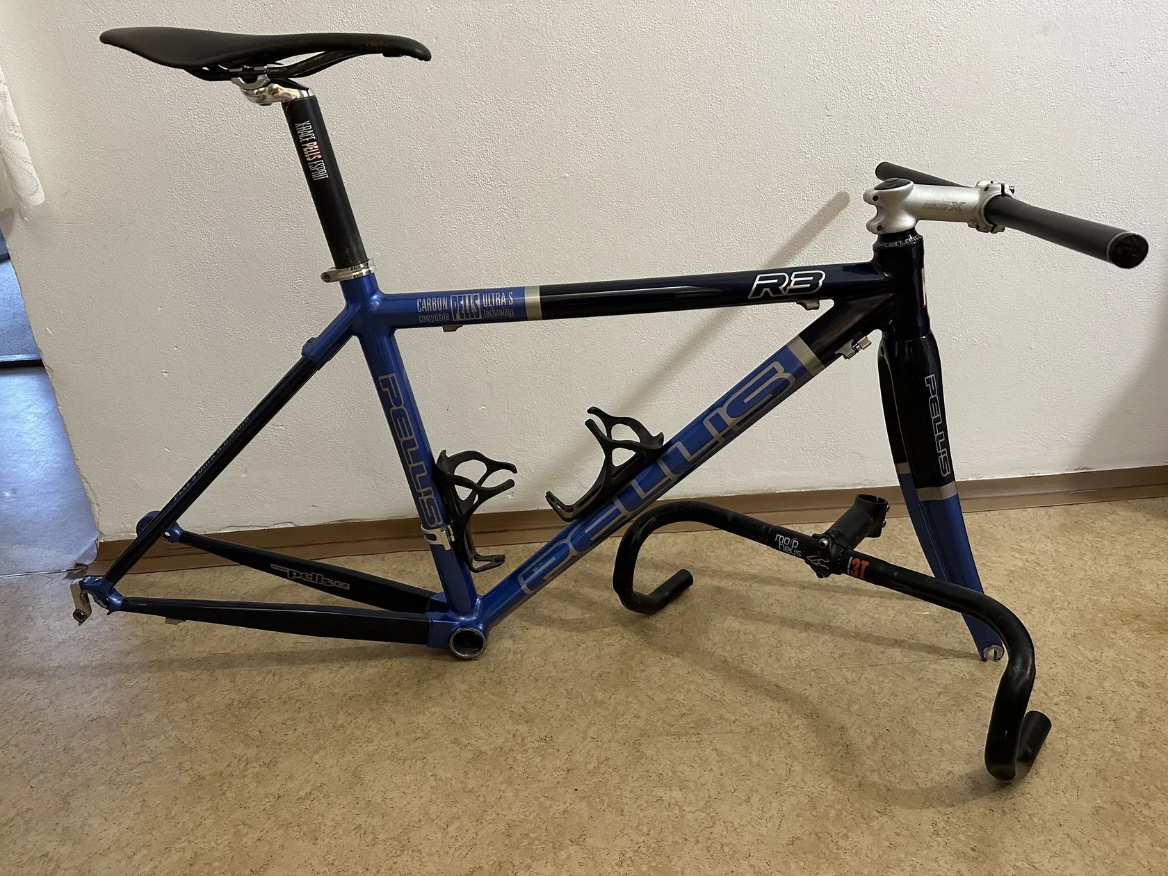 Prodám duralový rám se zadní karbonovou stavbou a přední karbonovou vidlicí(karbon sloupek), ve velikosti 440 mm (střed, zámek sedlovky), závit BSA 68 mm. Prodávám celý set co je na fotkách.Samozřemostí je doklad k rámu. Cena za vše 2600 kč.