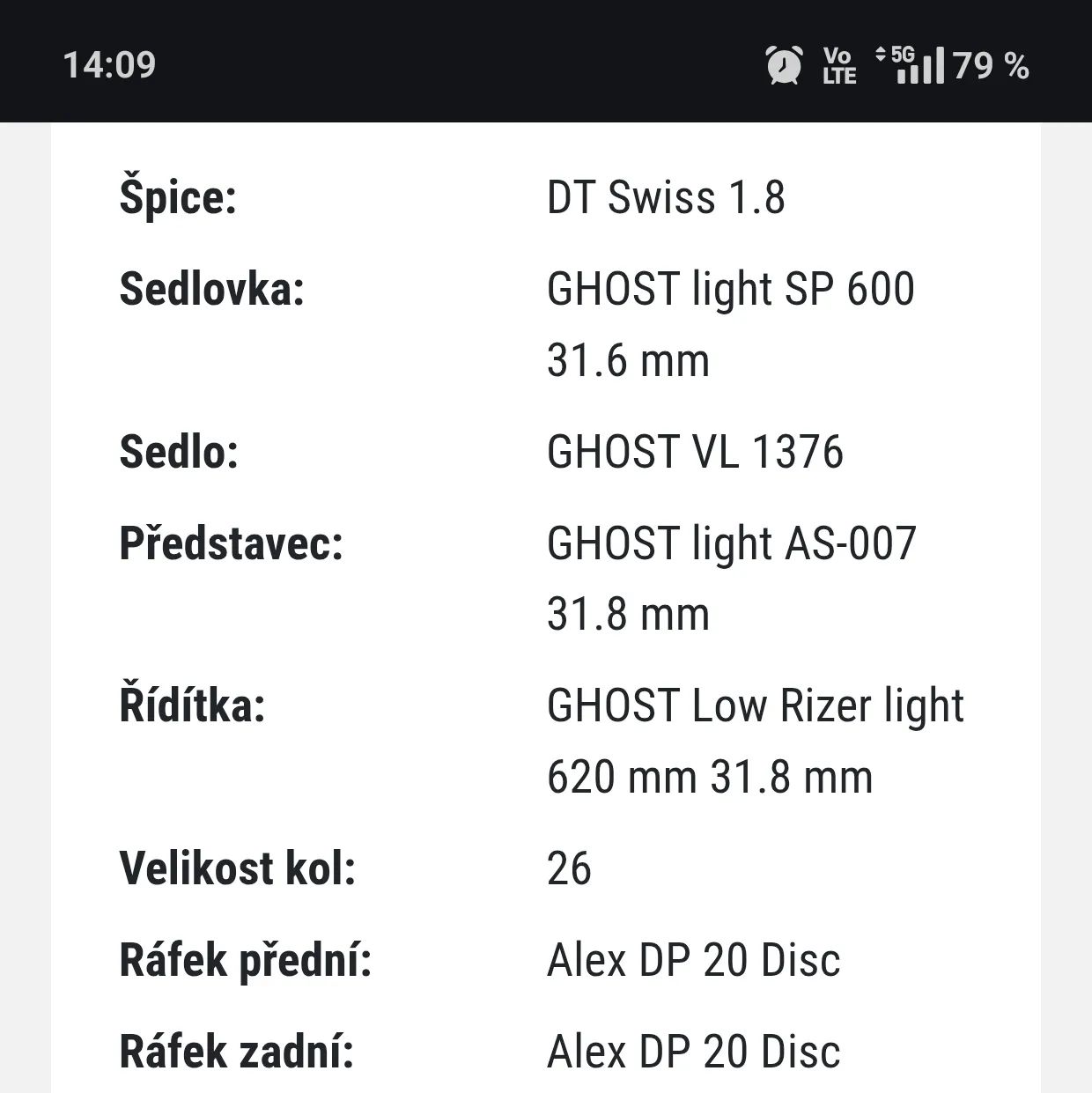 | Průměr kol: | 26" |