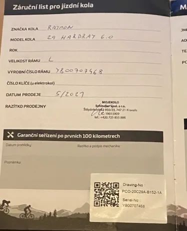 Každé kolo, které prodávám, je zakoupené poctivě s kupní smlouvou. Ke každému obchodu vystavuji vlastní kupní smlouvu, která slouží jako doklad o nákupu kola i jako garance férového jednání. Mojí prioritou je, aby si lidé mohli pořídit spolehlivé kolo za rozumnou cenu.