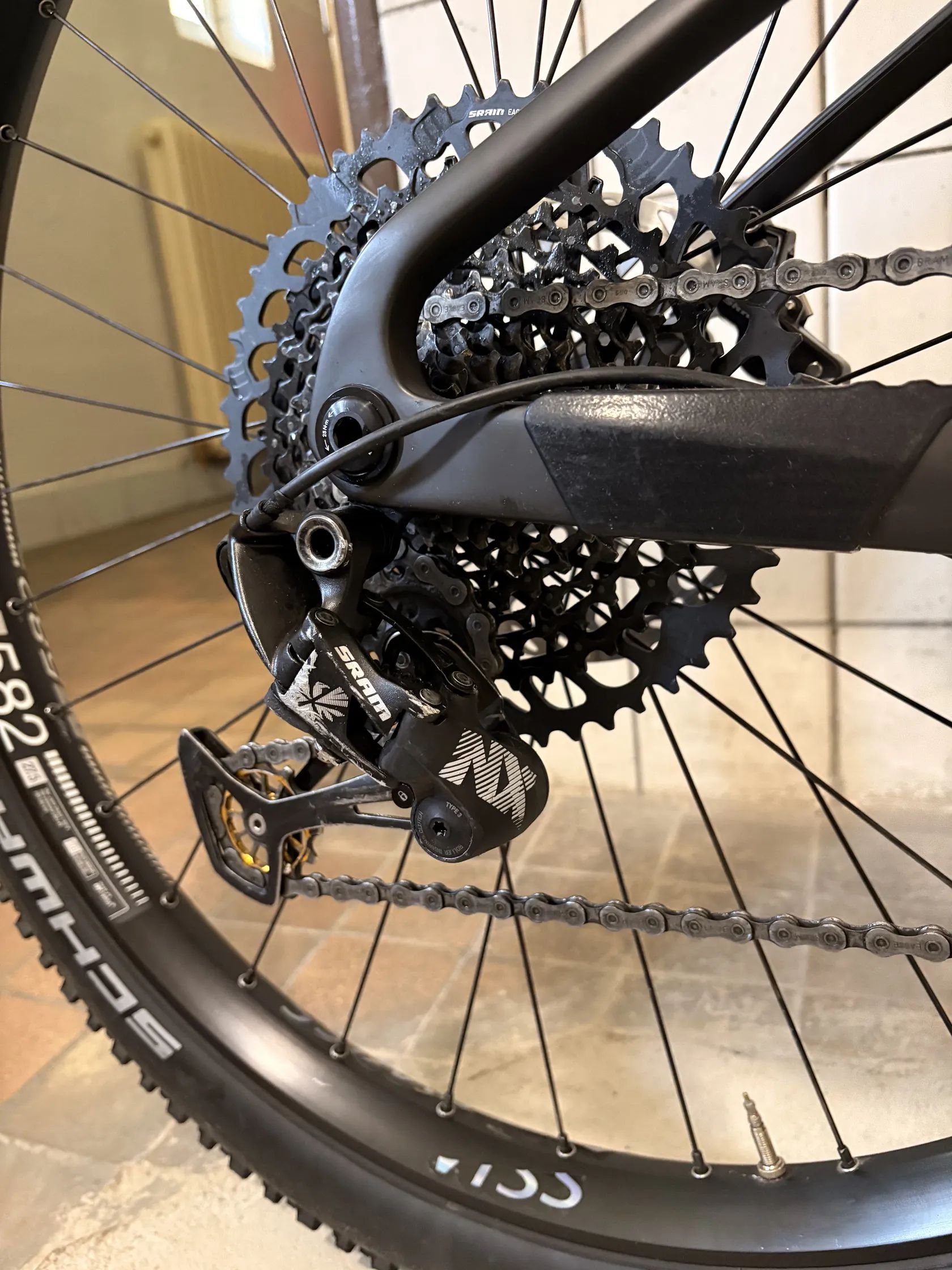 : Sram NX 12 rychlostí + kliky Sram GX DUB – 1x12, dostatečný rozsah pro XC, kombinace