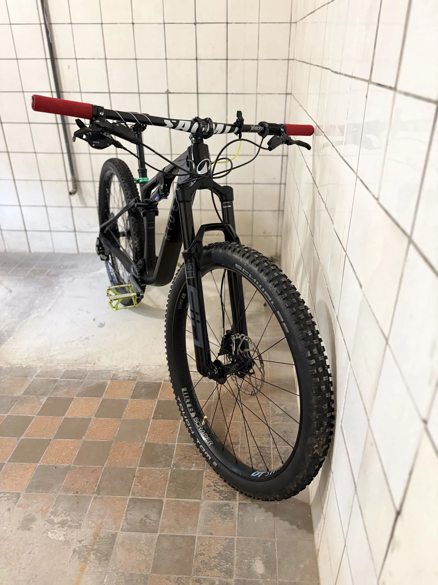 : karbonová řídítka 780 mm – šířka typická pro moderní XC/trail;
