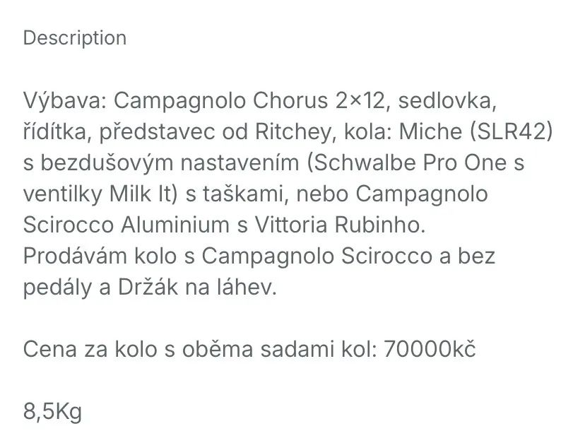 – jde o čistě silniční závodní kolo.