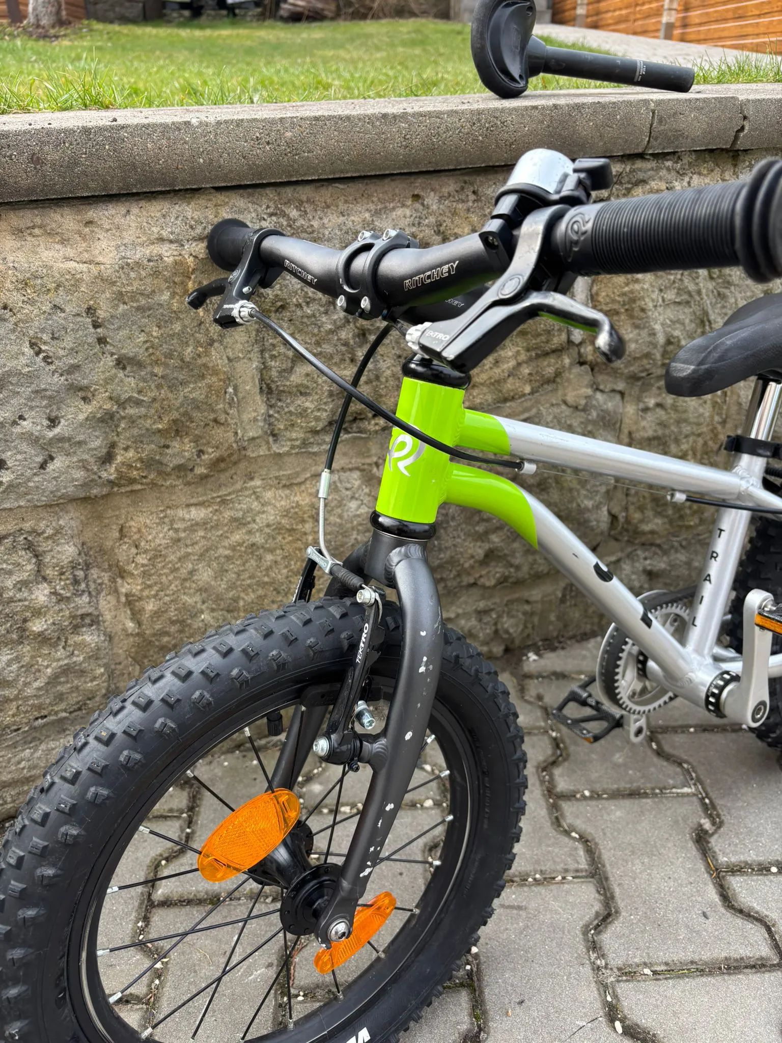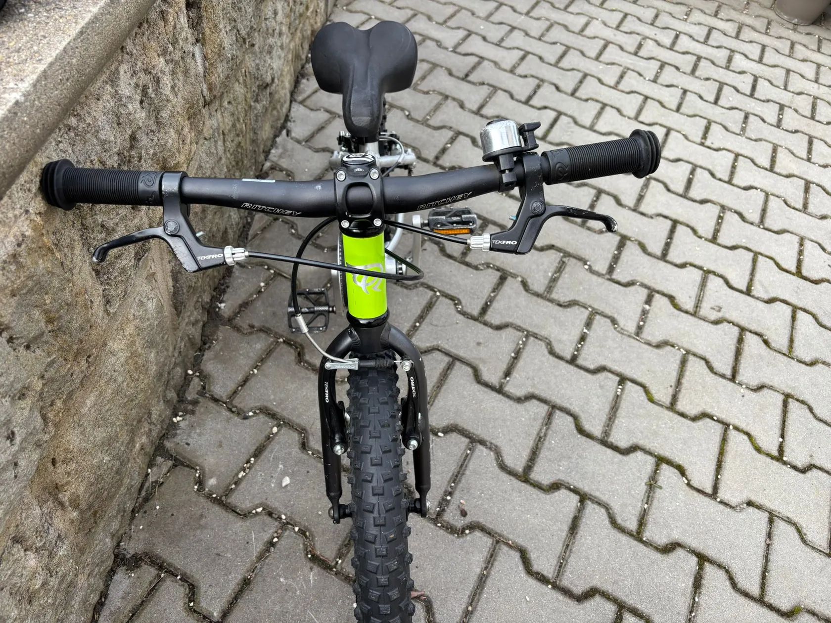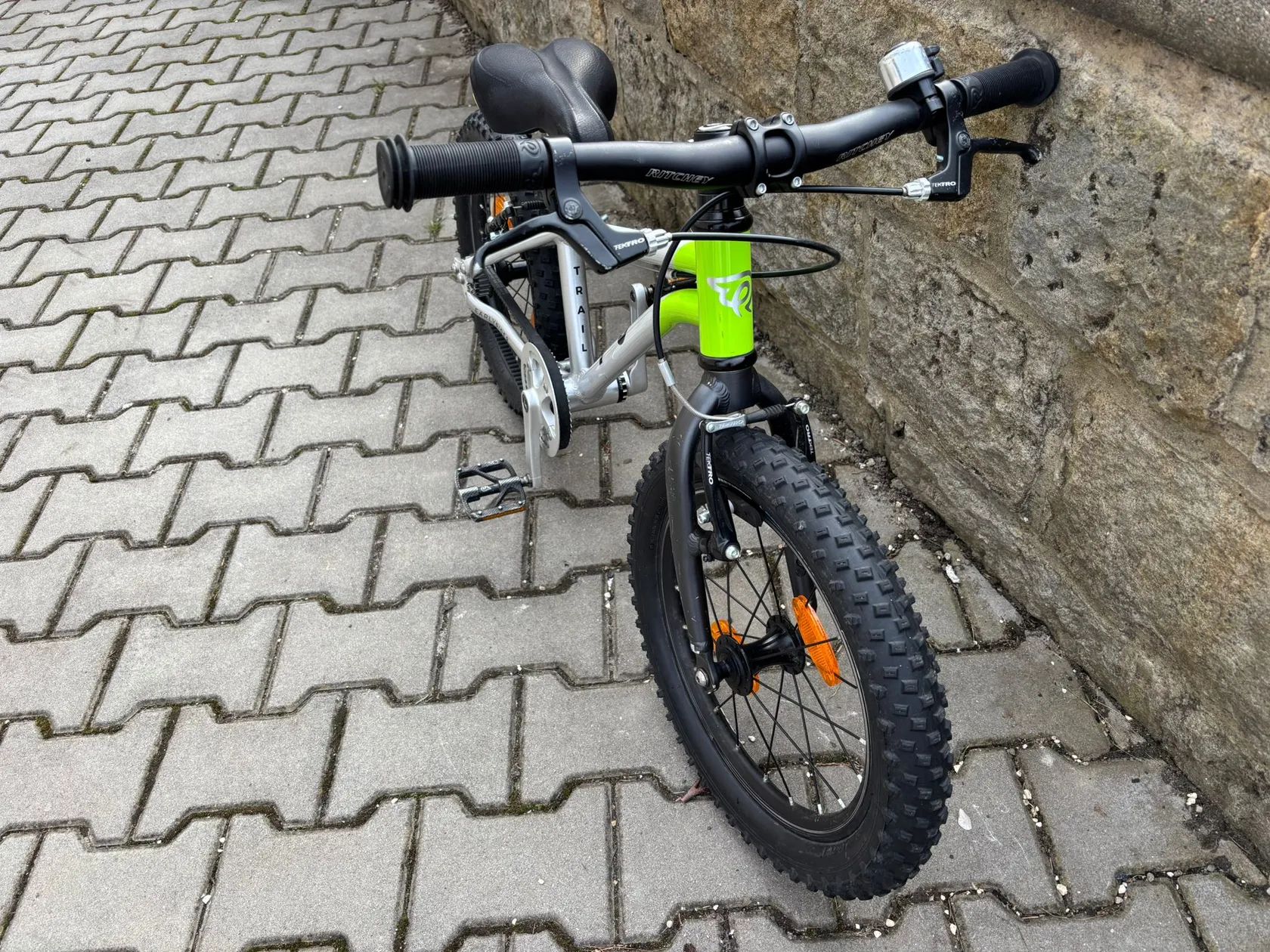 Na dětské kolo jde o nadstandardní / lehké sportovní osazení zaměřené na nízkou hmotnost a jednoduchou údržbu.