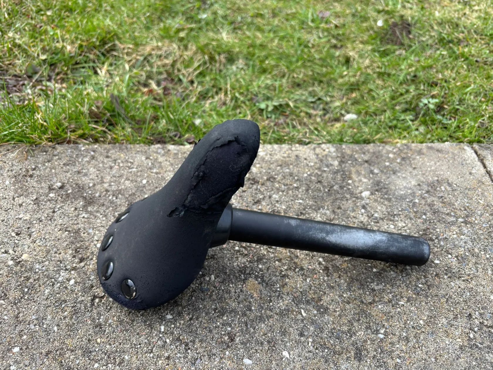Původní sedlo je poškozené (loupe se), kolo má nové sedlo, originální je přiloženo.