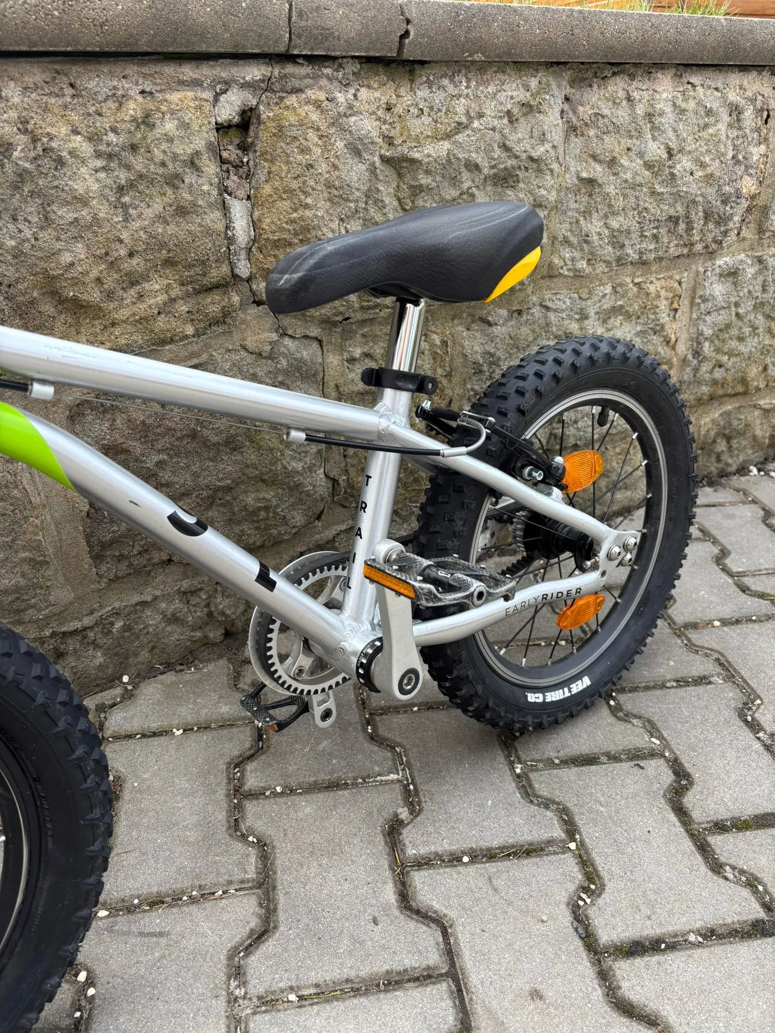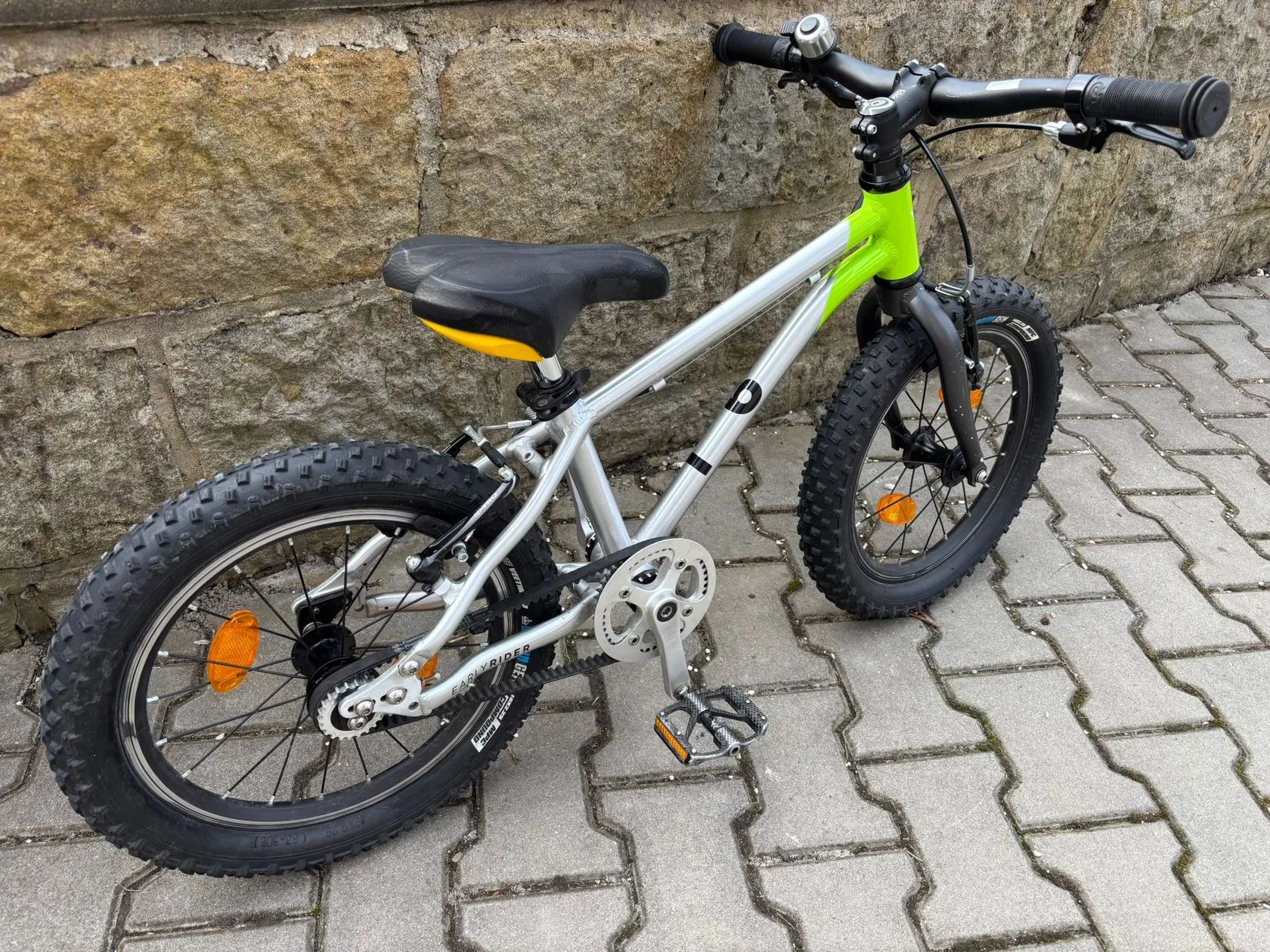 Prodám Early Rider Belter 16 Trail. S váhou 5,6 kg se jedná o jedno z nejlehčích kol na trhu. Po 2 dětech, ale málo jeté. Kolo je naprosto v pořádku, jen běžné oděrky. Originál sedlo se začalo loupat (viz. foto), nahrazeno novým, originál přidám ke kolu.