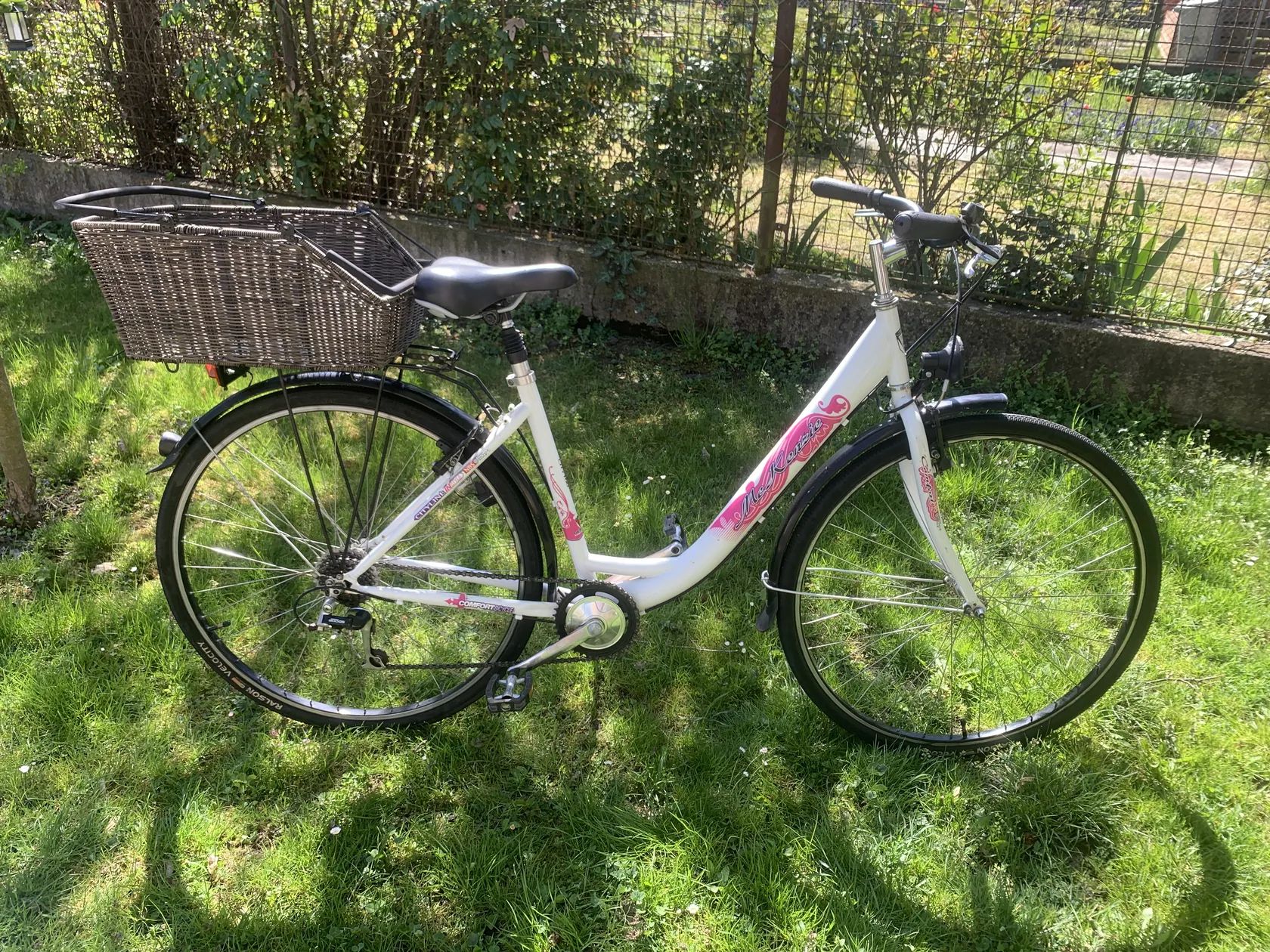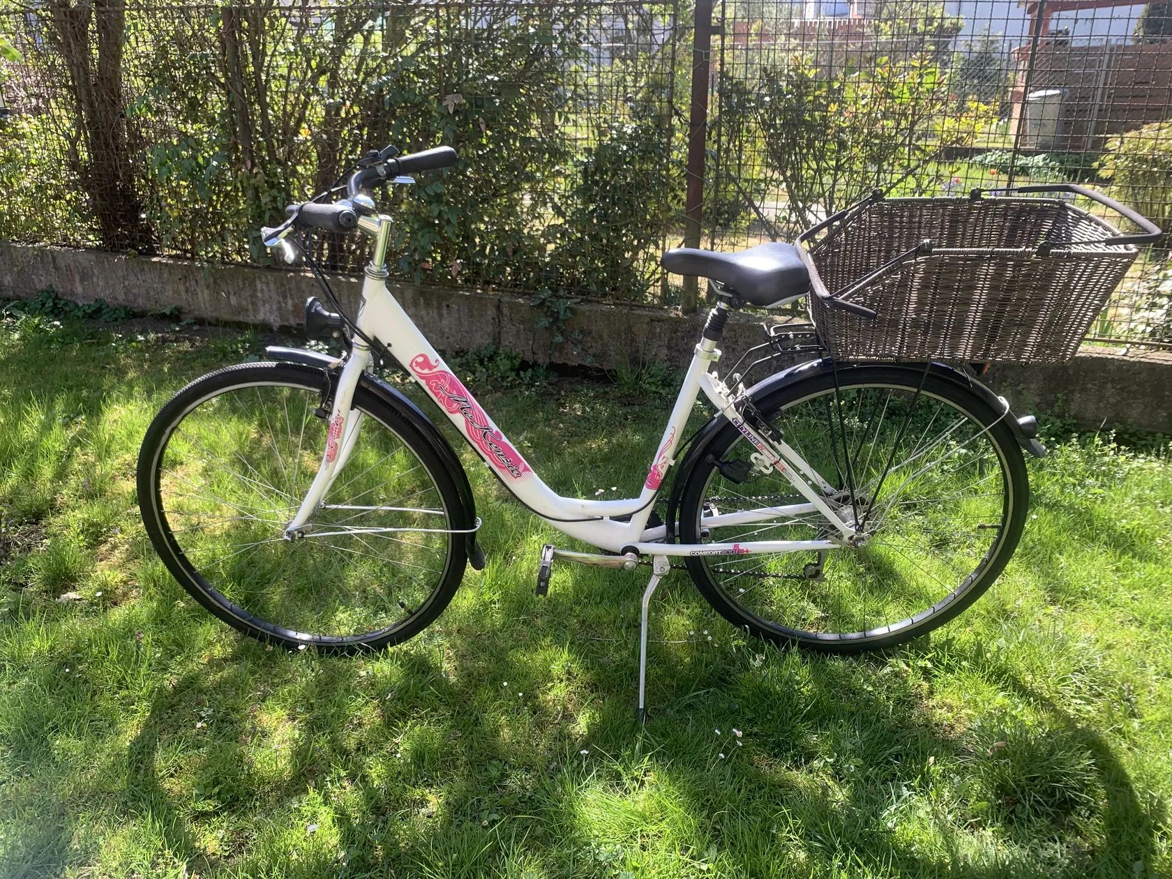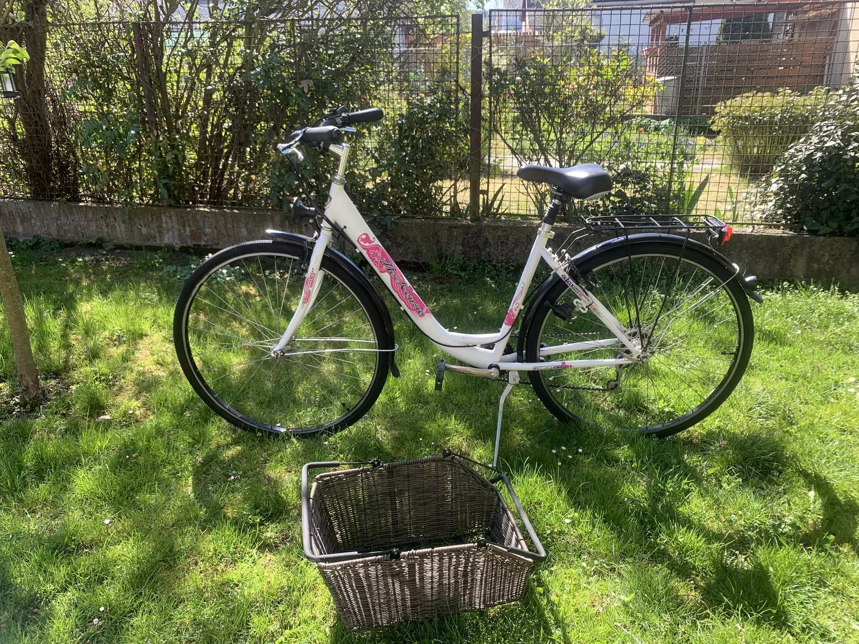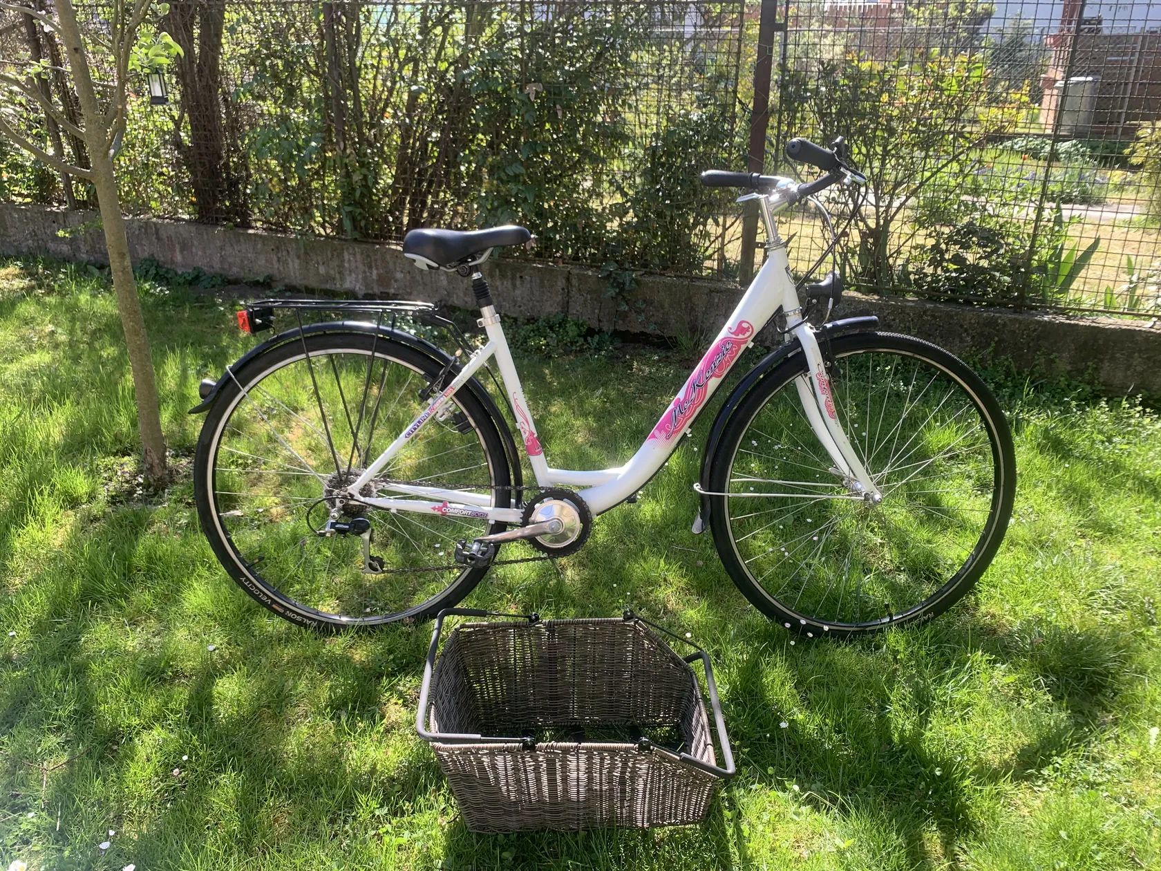 Dámské kolo MeKenzie.Hezké dámské kolo,přpraveno k ježdění,jen nasednout a ject. Pohodlné sedlo s odpruženou sedlovkou,sedm rychlostí,dynamo. Ke kolu přidám pěkný košík,který jde rychlopáskou přidělat k nosiči. Při focení jsem ho na nosič jen položil. Kolo je možno předat v Berouně nebo v Praze.