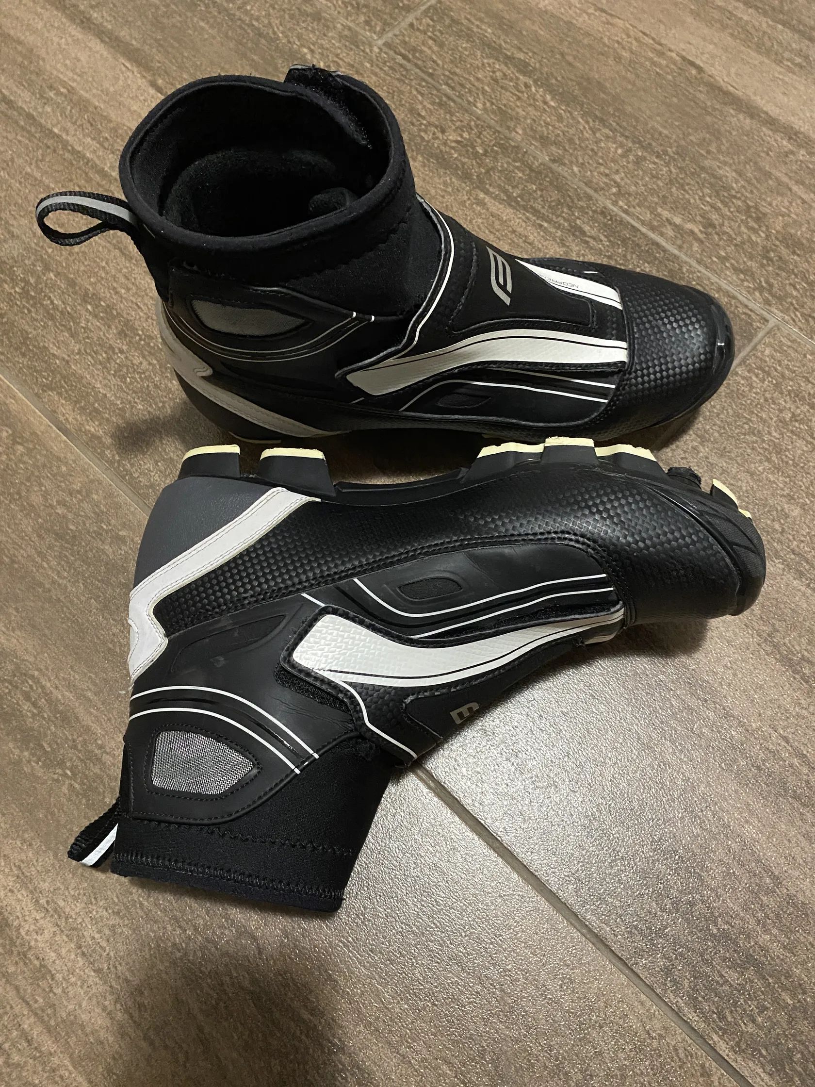 Zánovní a velmi málo používané zimní tretry Force ICE podešev: nylonový kompozit index tuhosti: 6 hmotnost: 485g (1/2 páru vel. 42) zapínání pomocí tkaniček vyztužená pata a špička špička chráněna gumovým okrajem proti okopu nepromokavý neoprenový materiál zapínání chráněno nepromokavým zipem a jazykem na suchý zip zateplená vnitřní část anatomická zateplená vložka vnitřní část z protiskluzového materiálu SPD kompatibilní reflexní prvky velikosti odpovídají standardu civilní obuvi