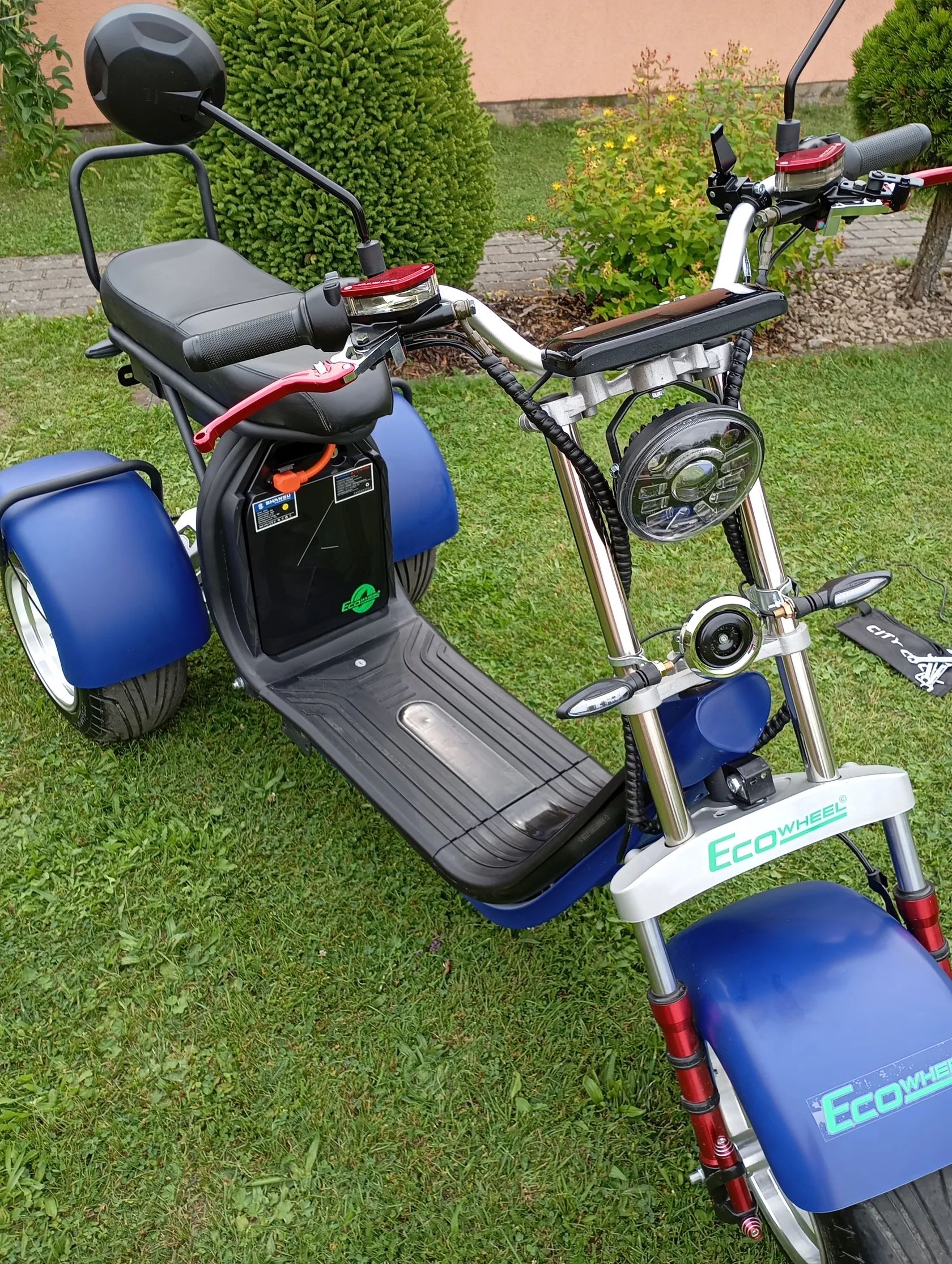 Prodám téměř novou elektrotrikolku - motor 2x2000W, pantografická náprava, nosnost 200kg pro2 osoby,