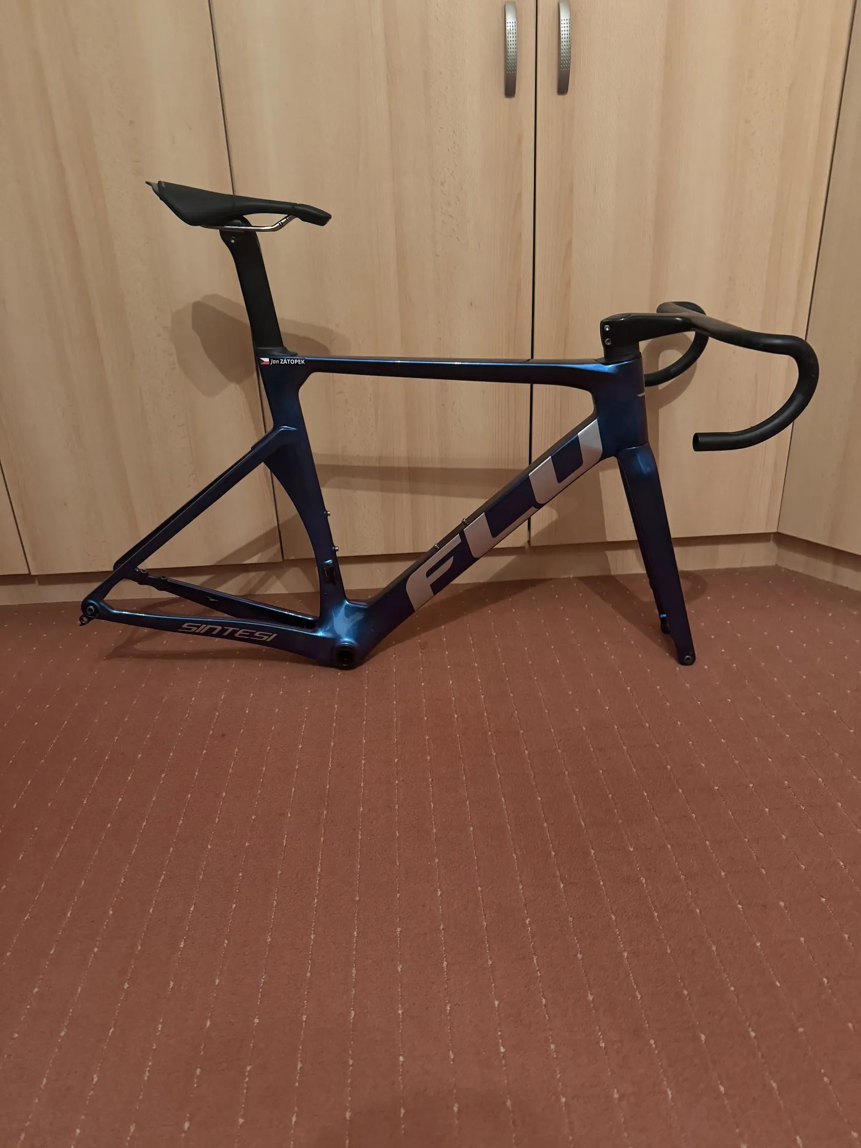 Prodám sezonu jetou rámovou sadu FLU RD24 v zakázkovém laku. Kompletní rámová sada, možnost se sedlem a kokpitem(120 představec- 400/420 řídítka-nahoře, v obloucích). Provozní oděrky. Rám pouze na elektronické sady. Nalisovaný střed Shimano pressfit. Klasické pevné osy. Geometrie na fotce. Při rychlém jednání sleva.