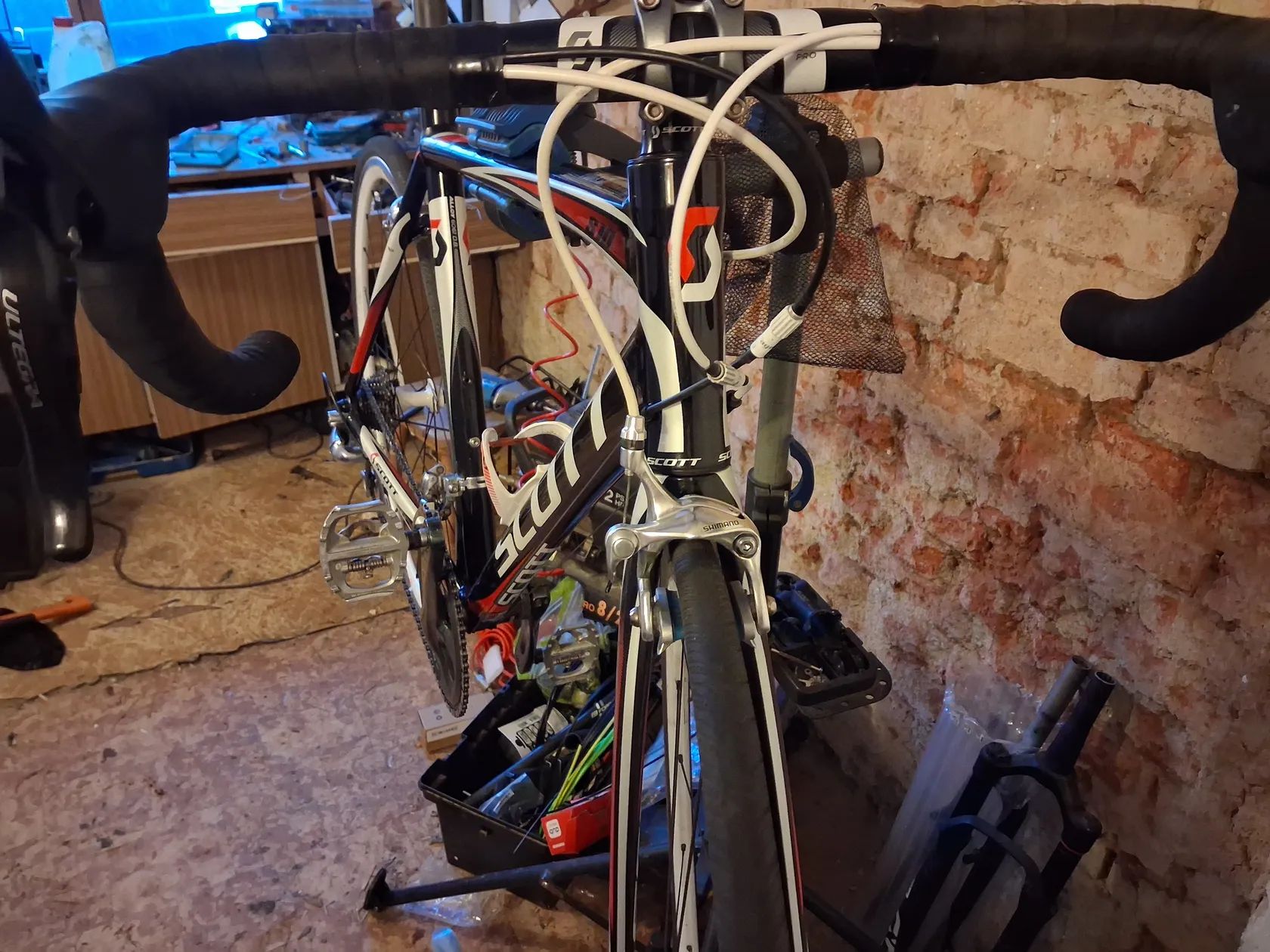 V pěkném stavu, hliníkový, karbonová vidlice a sedlovka. Velikost je 53cm střed klik-vrch sedlovky. Řazení, přehazovačka, přesmykač Shimano Ultegra 2x10. Kliky Shimano Tiagra. Řetěz v polovině životnosti. sednout a jezdit. Zadní kolo trochu hází, prasknul nipl, docentrováno, ale v mezích možností(původními niply nešlo už moc otáčet).