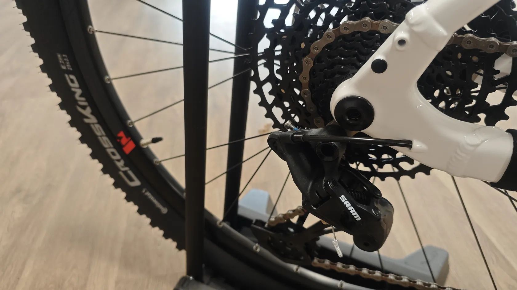 Zadní kolo: Mach 1 TRAXX, With eyelets, Tubeless ready / Hub: R Raymon DA210R, 6-hole, 12x148 mm, thru axle