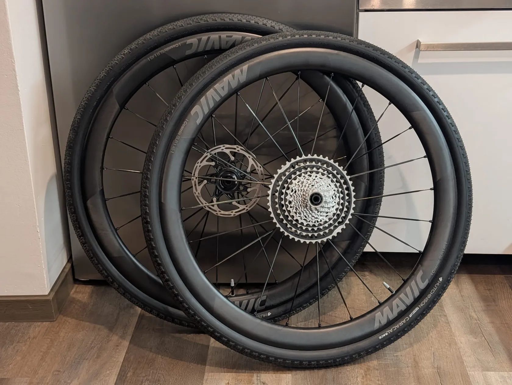 Více informací o kolech zde: https://www.mavic.com/en-int/p/cosmic-slr-45-disc-23mm-rr2305 Jde o moderní kola s vnitřní šířkou 23mm, ráfek bez otvorů na niple a nutnosti pásky, aero dráty, mosazné niple, Instant Drive 360 zubatkový ořech, ASTM 2, tj. dostatečná odolnost i pro lehký gravel (silnice a mimo silnice se skoky méně než 15cm). Běžná cena okolo 50tis, v eshopech 40tis. Děkuji!