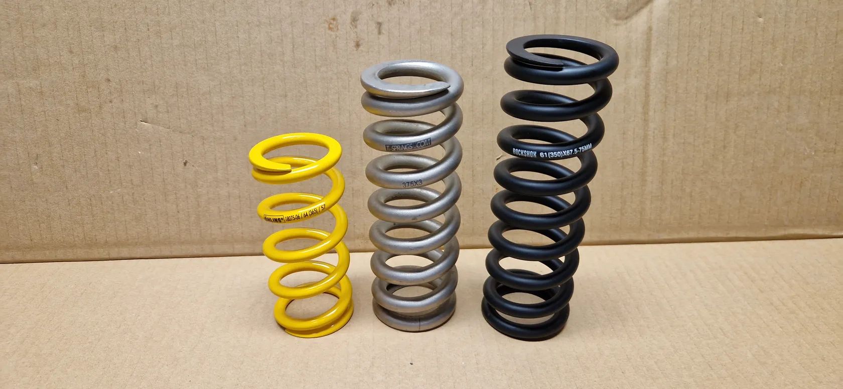 Prodám pružiny RockShox - prodáno. Ti-Springs 375x3, titanová, délka 156mm, vnitřní průměr 36mm, použita. Cena 1000,- Öhlins 365x57, délka 113mm, vnitřní průměr 36mm, z nového kola. Cena 1500,- (možná výměna za tvrdší 411).